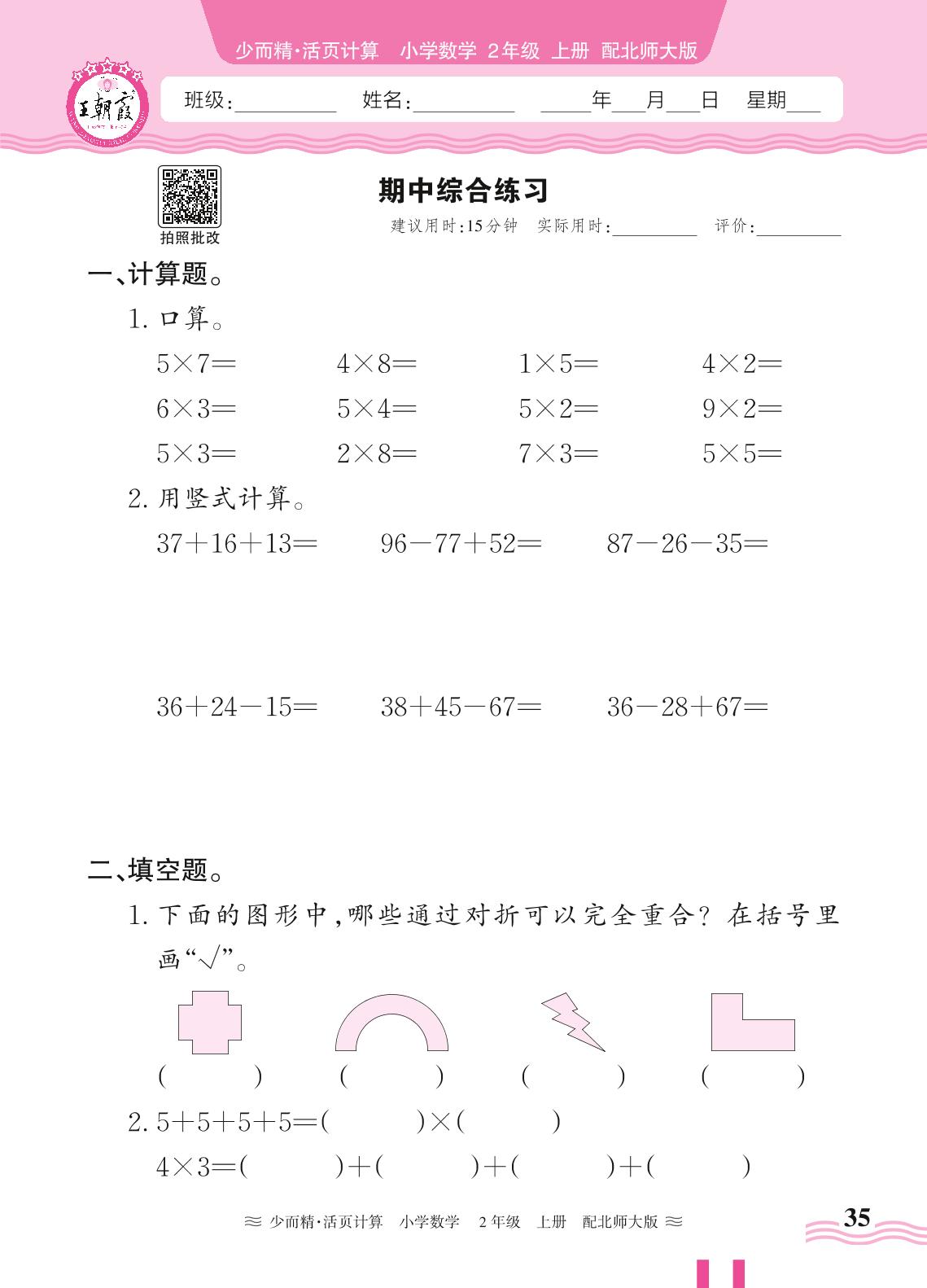 2024秋上册二年级数学北师版 期中综合练习(计算专练)