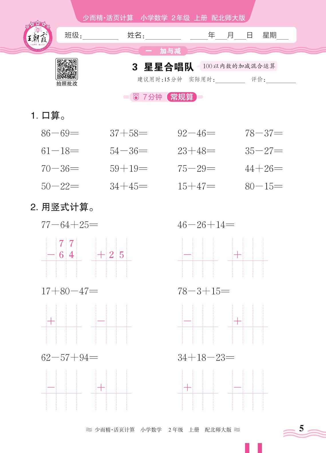 2024秋上册二年级数学北师版 第一单元 加与减——3. 星星合唱队_R240819094622310