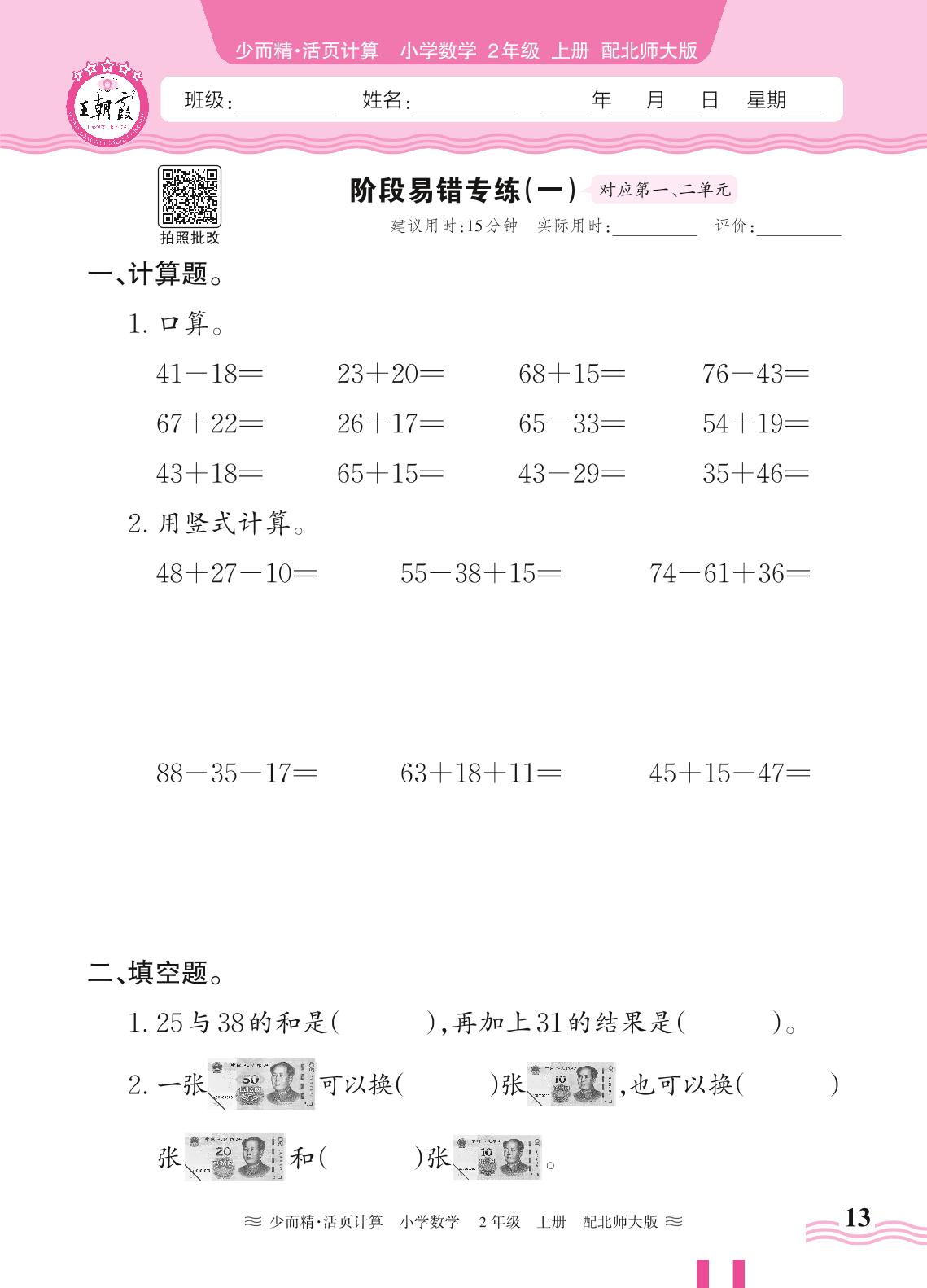 2024秋上册二年级数学北师版 第一、二单元 阶段易错专练