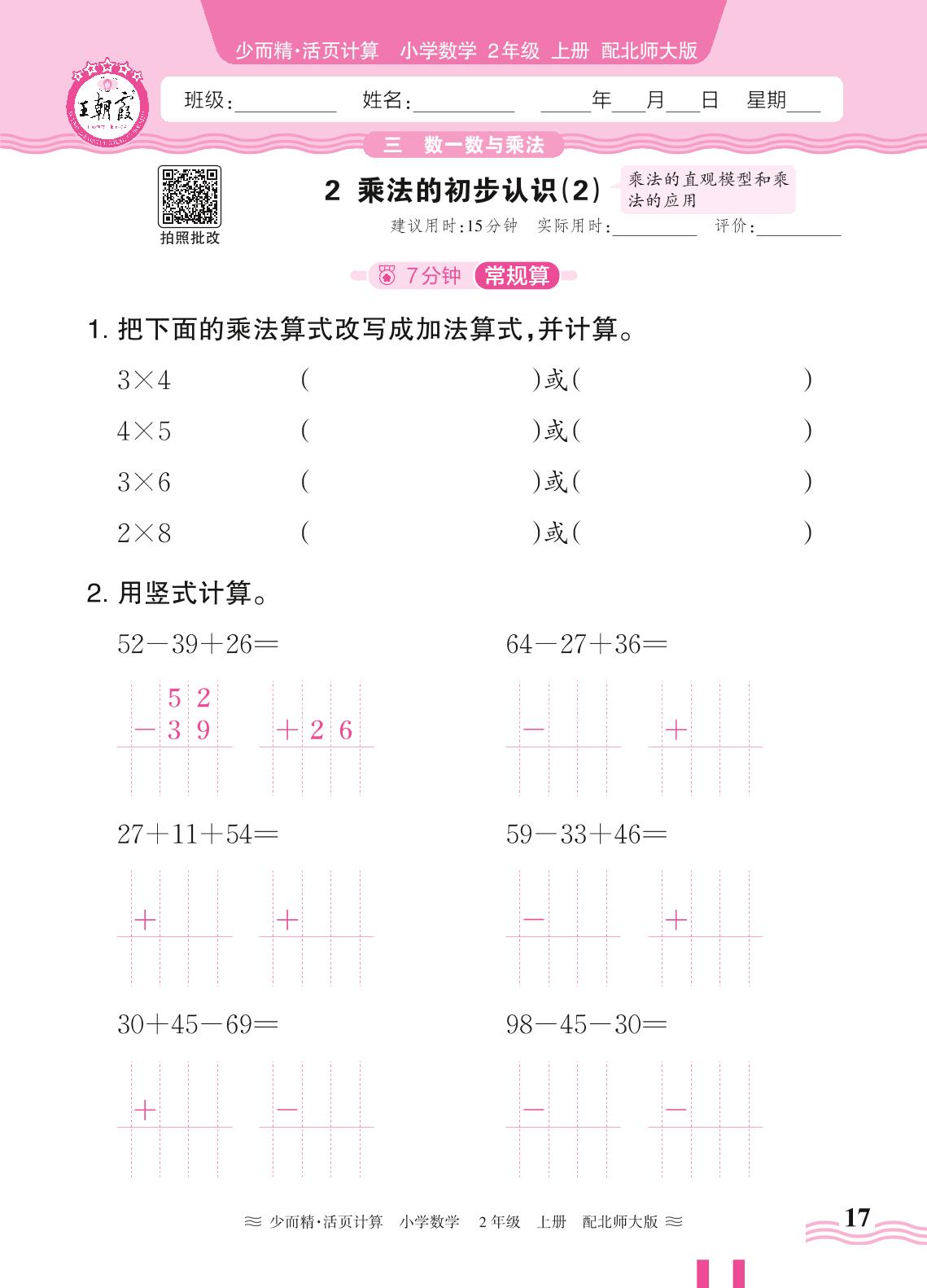 2024秋上册二年级数学北师版 第三单元 数一数与乘法——2. 乘法的初步认识(2)