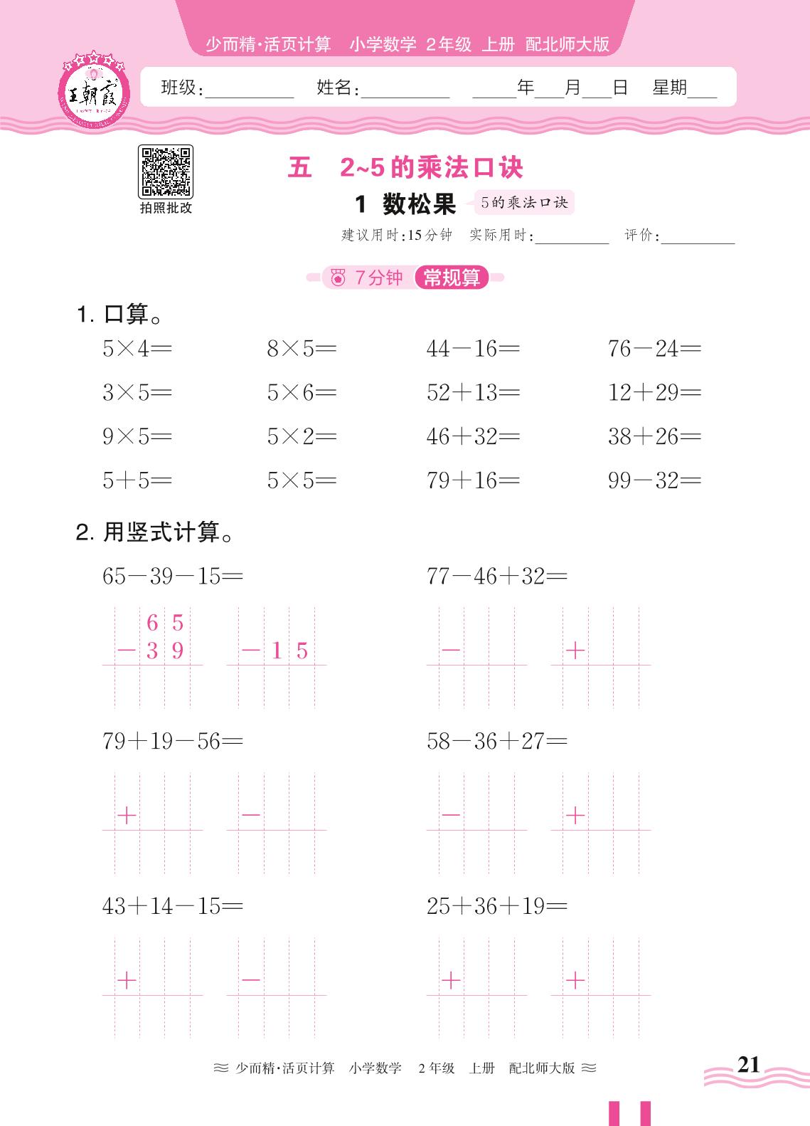 2024秋上册二年级数学北师版 第五单元 2~5的乘法口诀——1. 数松果_R240819094626835