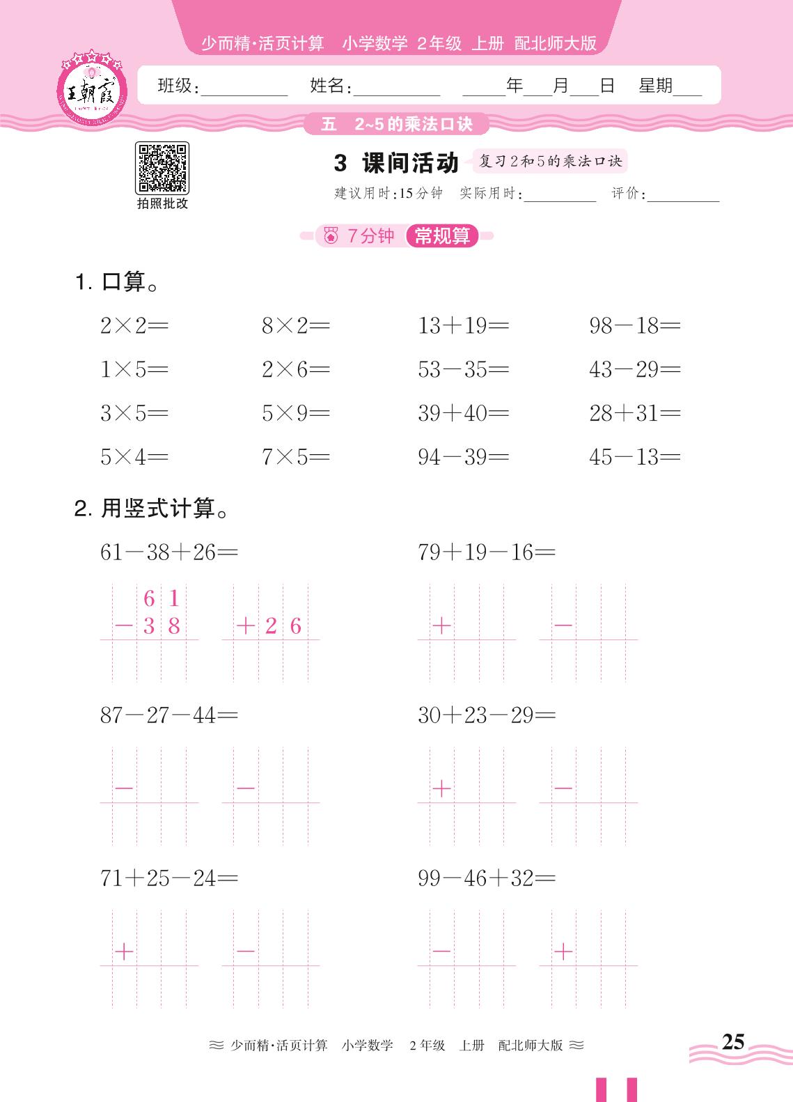 2024秋上册二年级数学北师版 第五单元 2~5的乘法口诀——3. 课间活动_R240819094626637