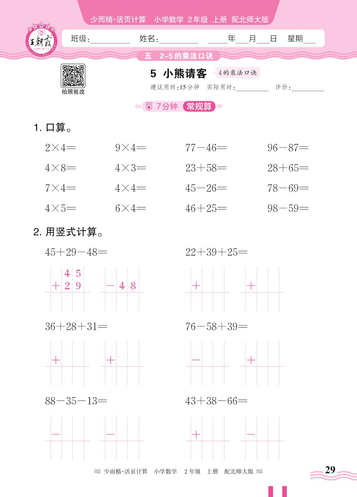 2024秋上册二年级数学北师版 第五单元 2~5的乘法口诀——5. 小熊请客_R240819094627951