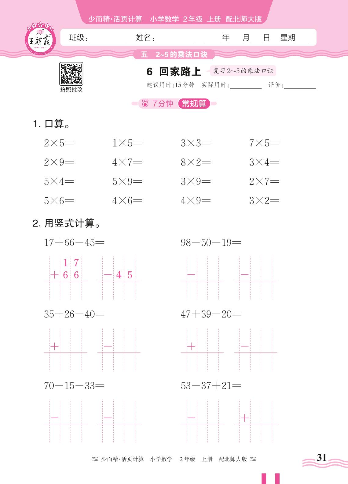2024秋上册二年级数学北师版 第五单元 2~5的乘法口诀——6. 回家路上_R240819094628593