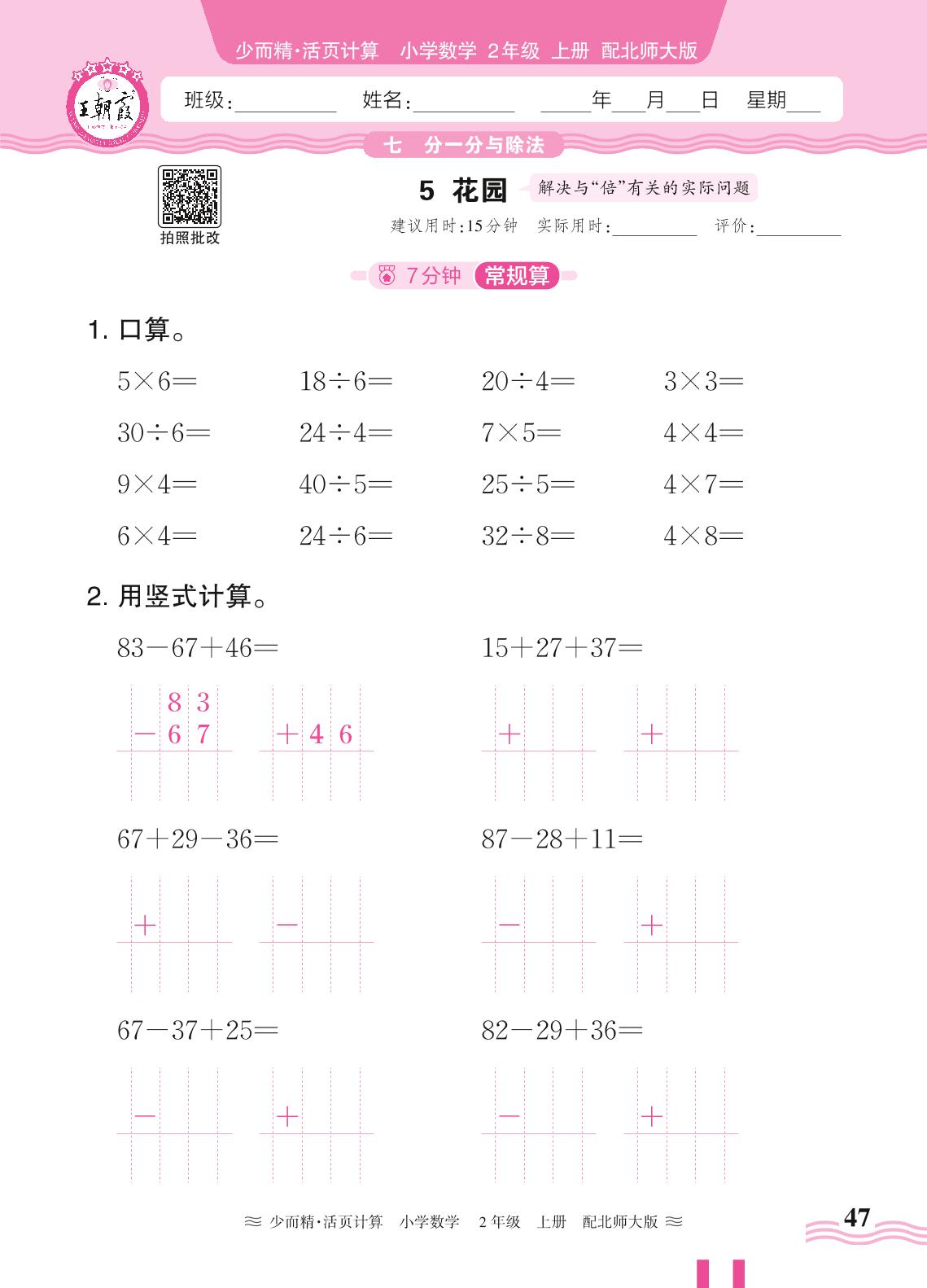 2024秋上册二年级数学北师版 第七单元 分一分与除法——5. 花园
