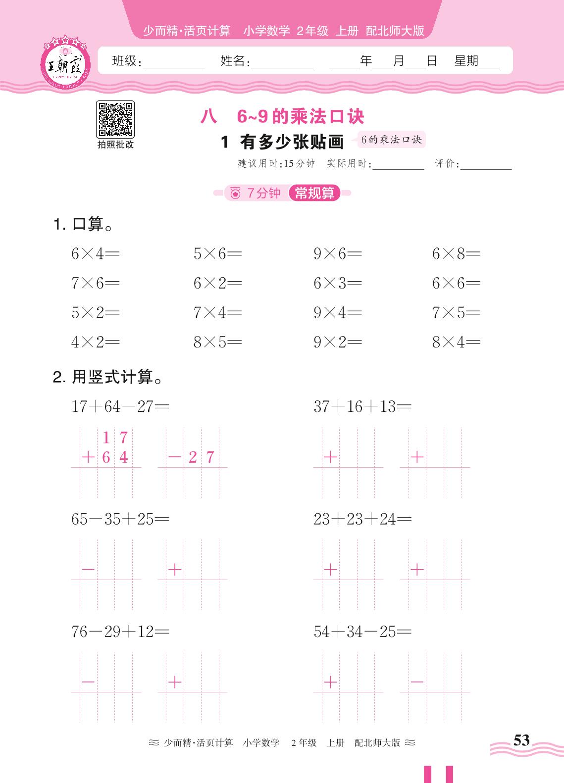2024秋上册二年级数学北师版 第八单元 6~9的乘法口诀——1. 有多少张贴画_R240819094631240