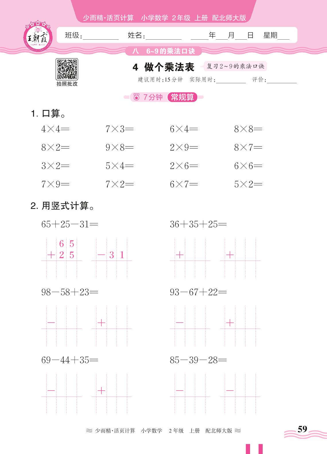 2024秋上册二年级数学北师版 第八单元 6~9的乘法口诀——4. 做个乘法表_R240819094632960