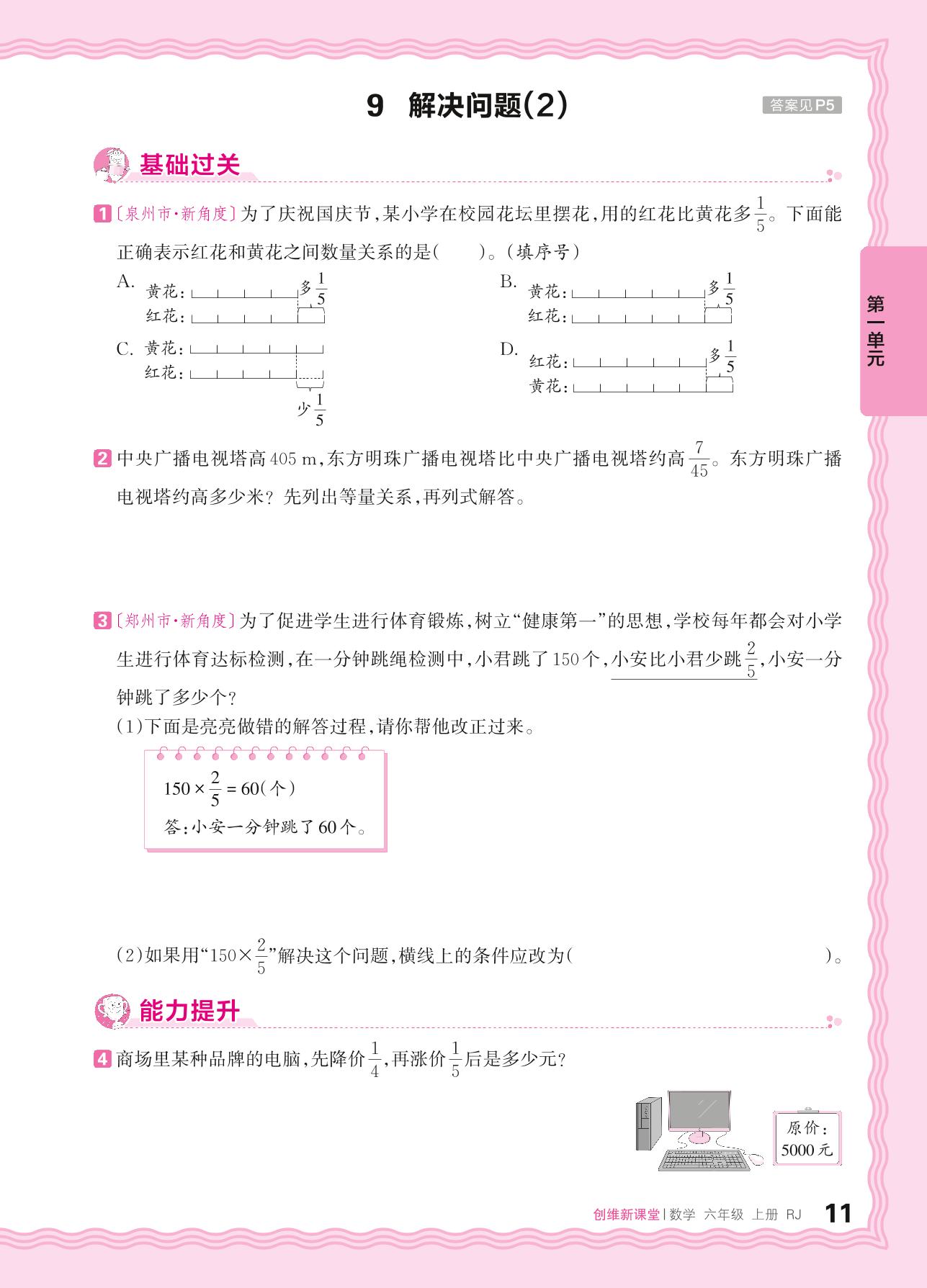 2024秋上册六年级数学人教版 第一单元 分数乘法——9. 解决问题(2)
