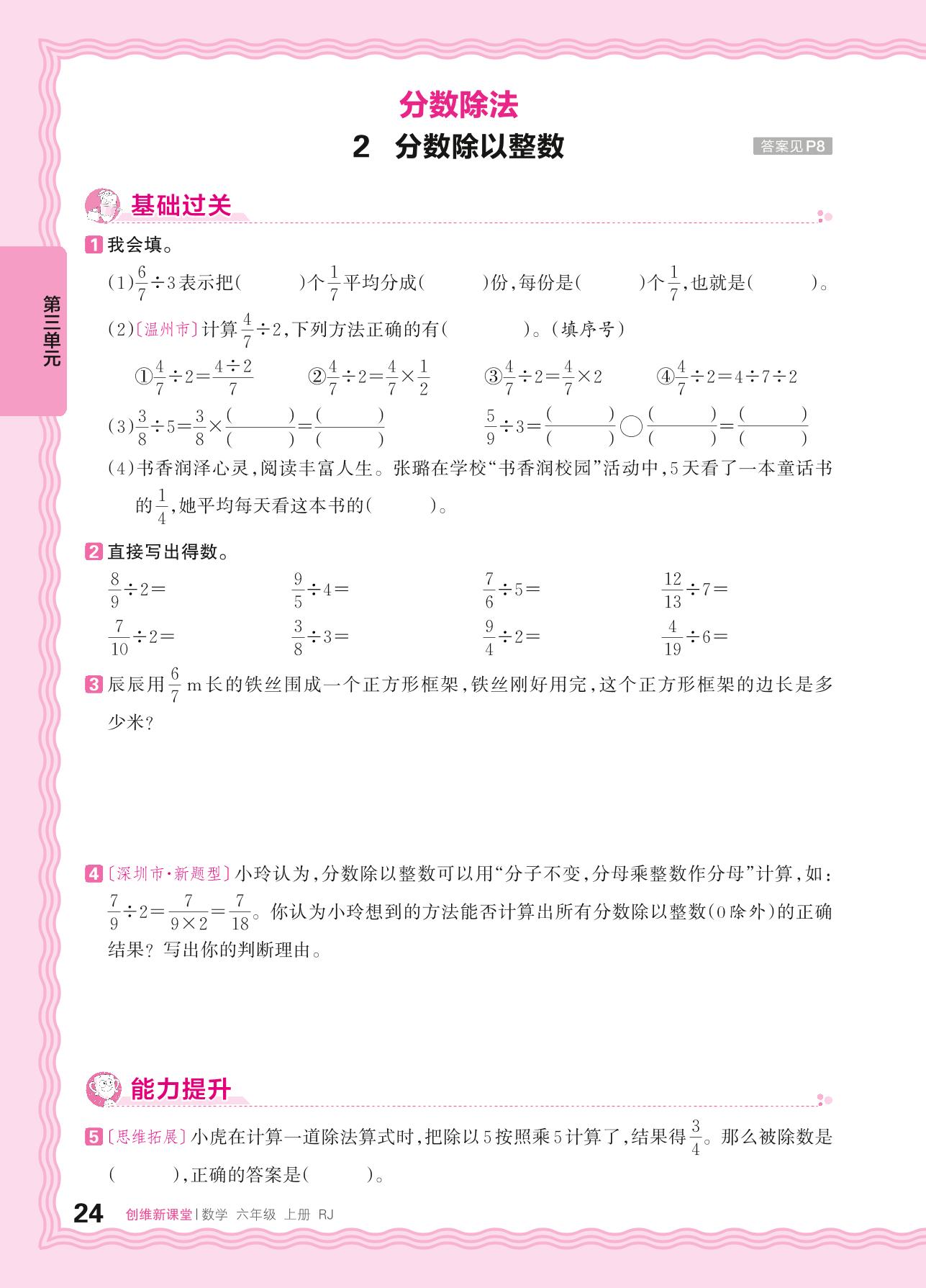 2024秋上册六年级数学人教版 第三单元 分数除法——2. 分数除以整数
