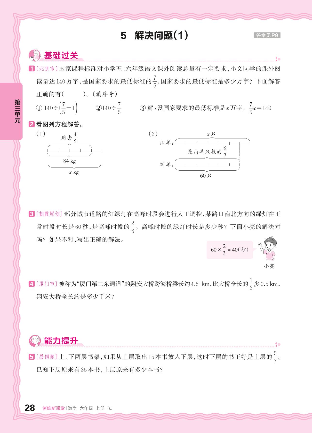 2024秋上册六年级数学人教版 第三单元 分数除法——5. 解决问题(1)