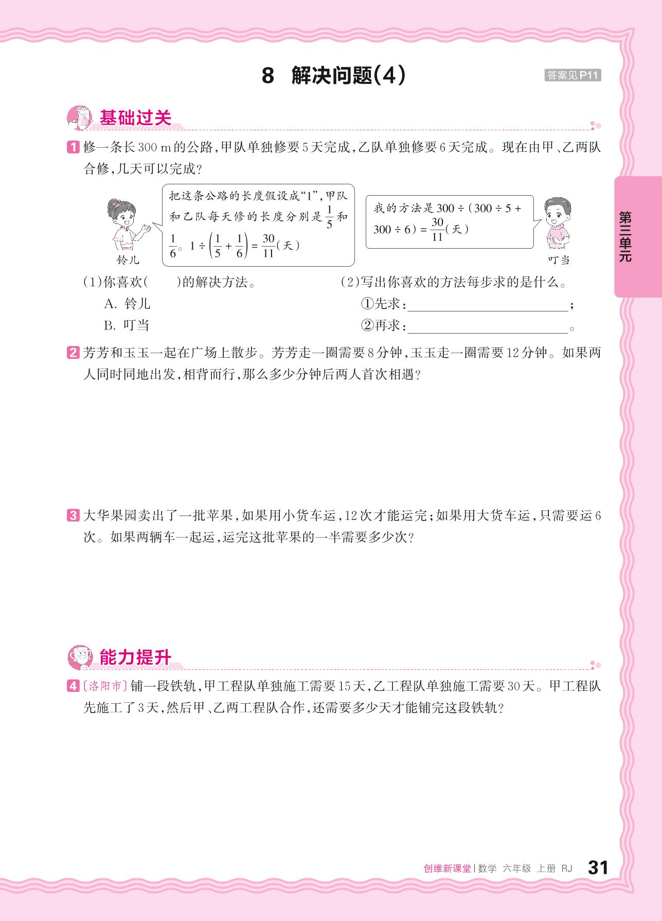 2024秋上册六年级数学人教版 第三单元 分数除法——8. 解决问题(4)