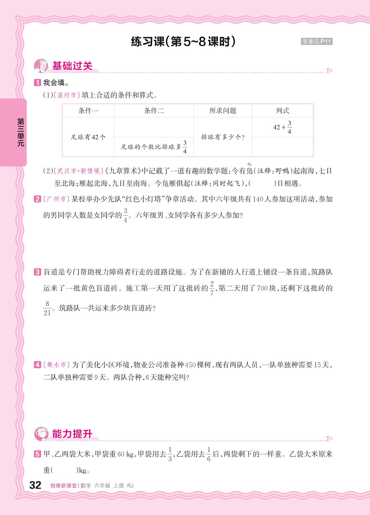 2024秋上册六年级数学人教版 第三单元 分数除法——解决问题练习课