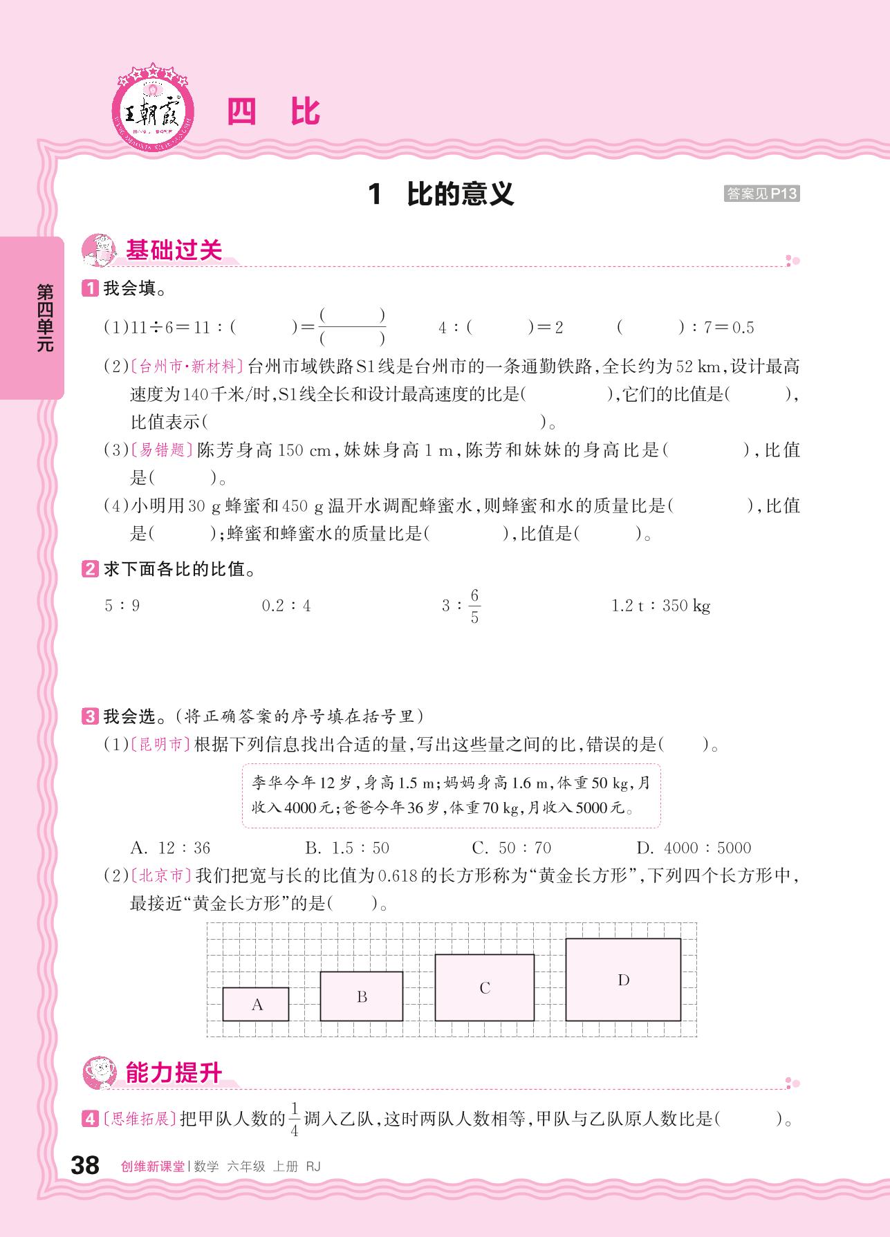 2024秋上册六年级数学人教版 第四单元 比——1. 比的意义