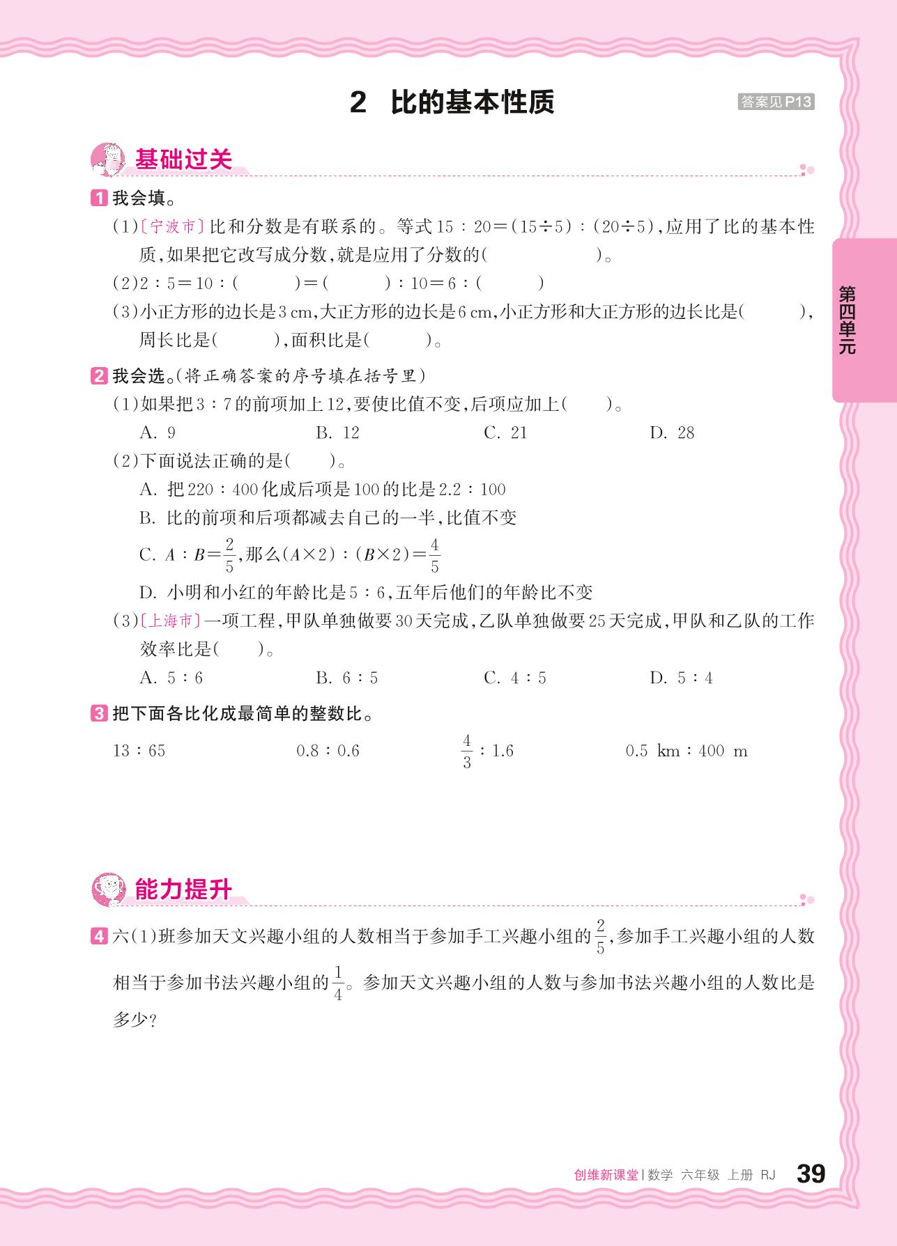 2024秋上册六年级数学人教版 第四单元 比——2. 比的基本性质