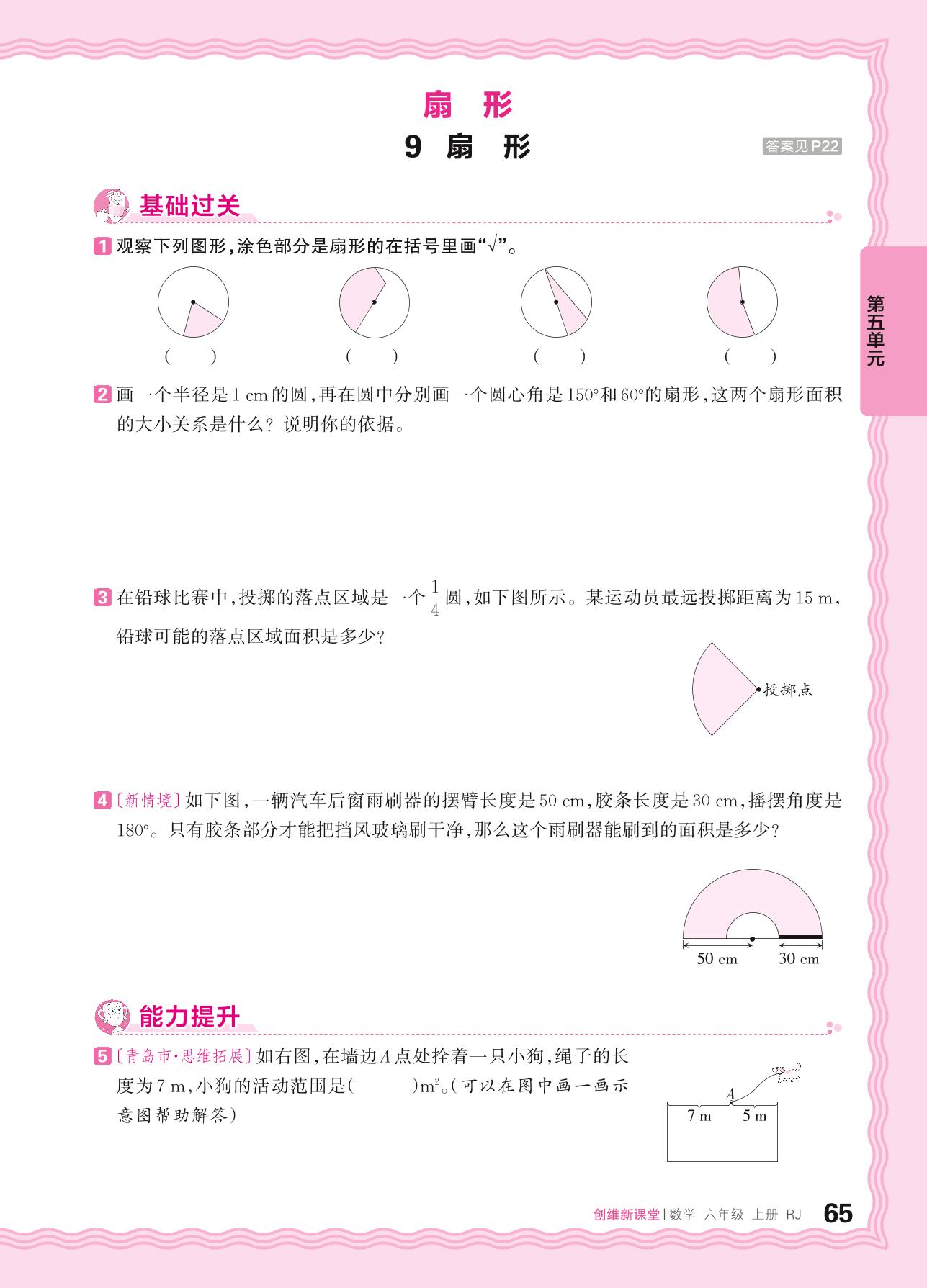 2024秋上册六年级数学人教版 第五单元 圆——9. 扇形
