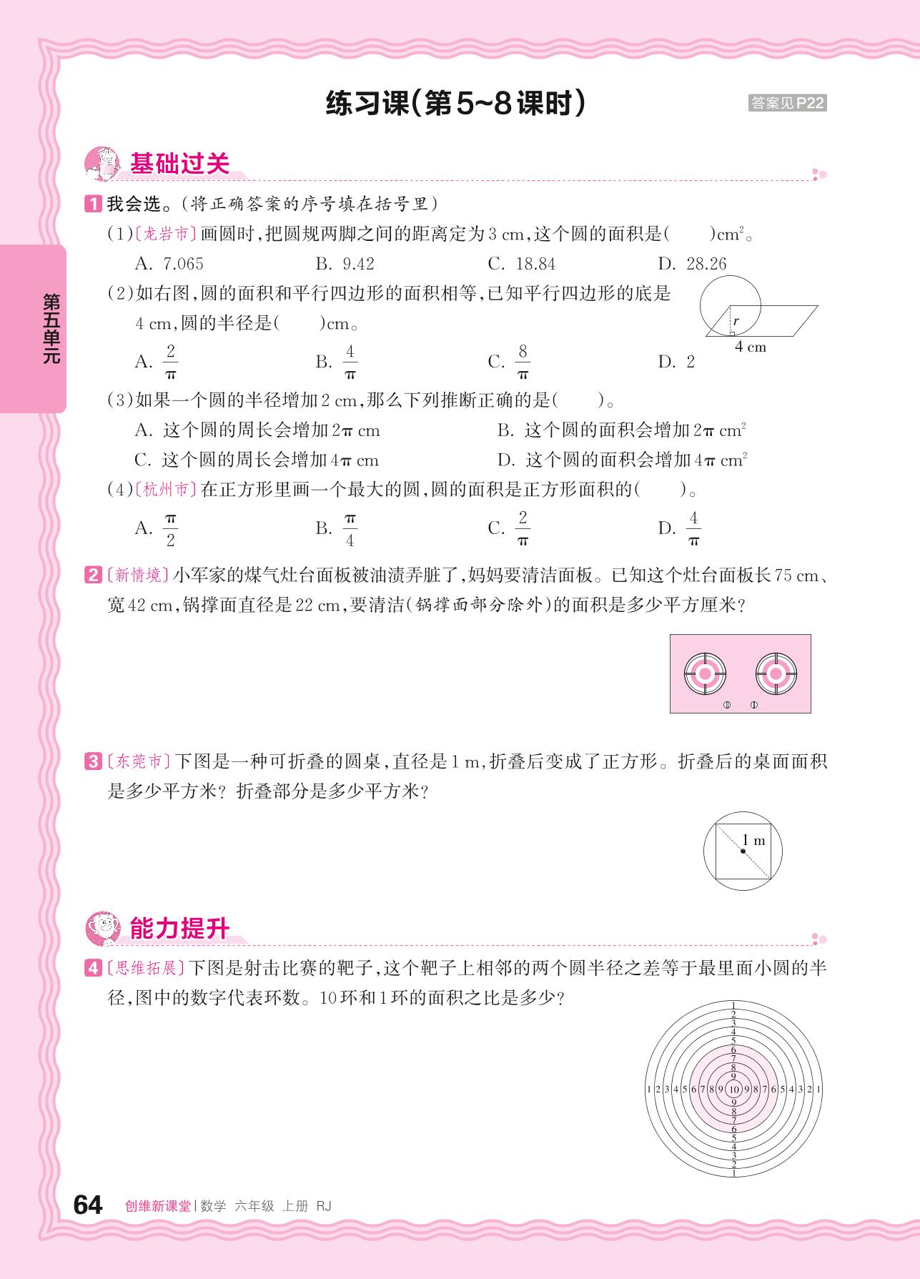 2024秋上册六年级数学人教版 第五单元 圆——圆的面积练习课