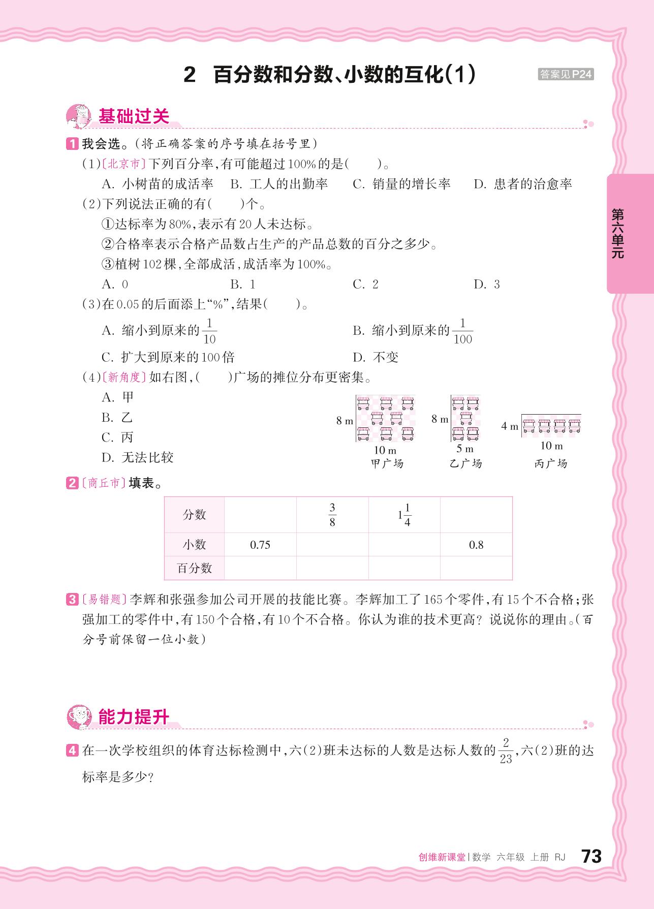 2024秋上册六年级数学人教版 第六单元 百分数(一)——2. 百分数和分数、小数的互化(1)