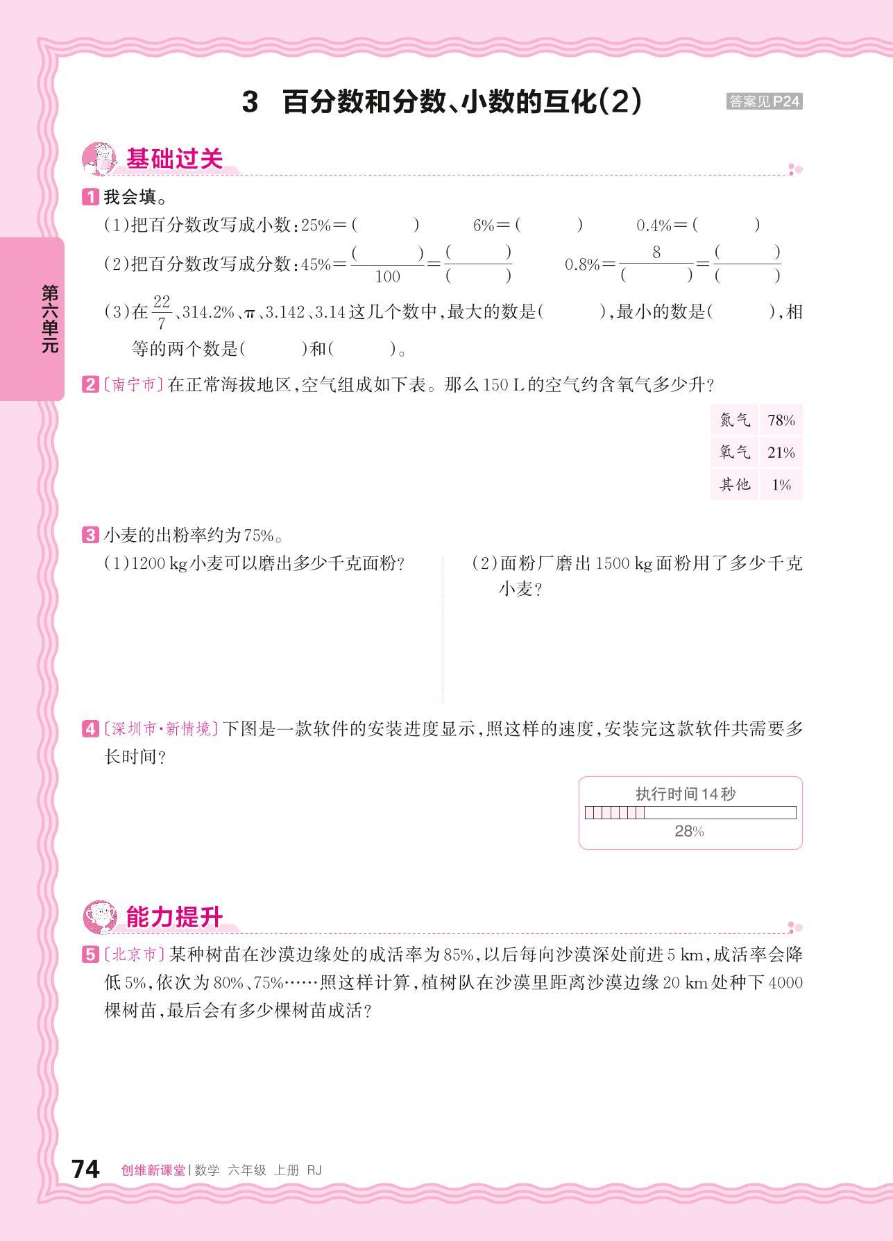 2024秋上册六年级数学人教版 第六单元 百分数(一)——3. 百分数和分数、小数的互化(2)