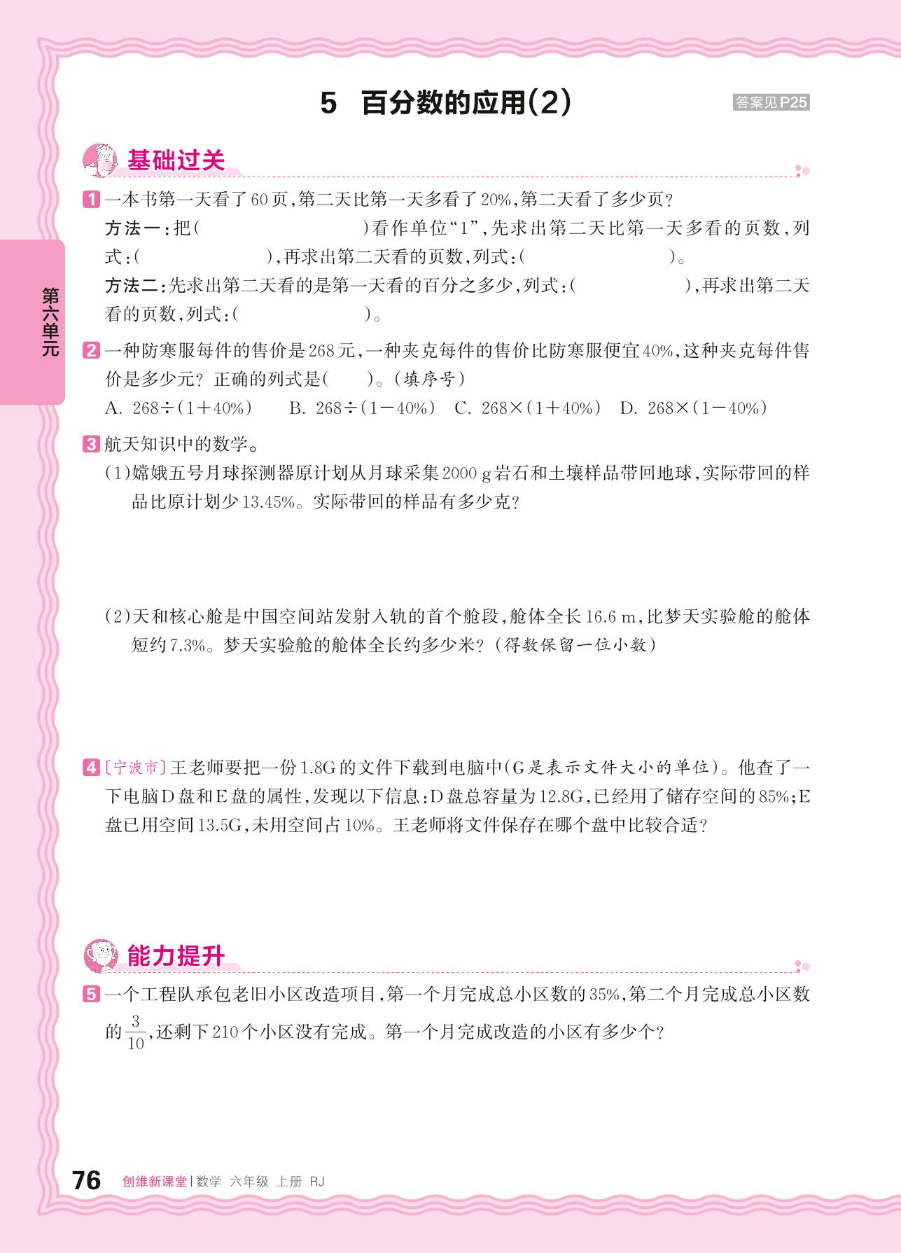 2024秋上册六年级数学人教版 第六单元 百分数(一)——5. 百分数的应用(2)