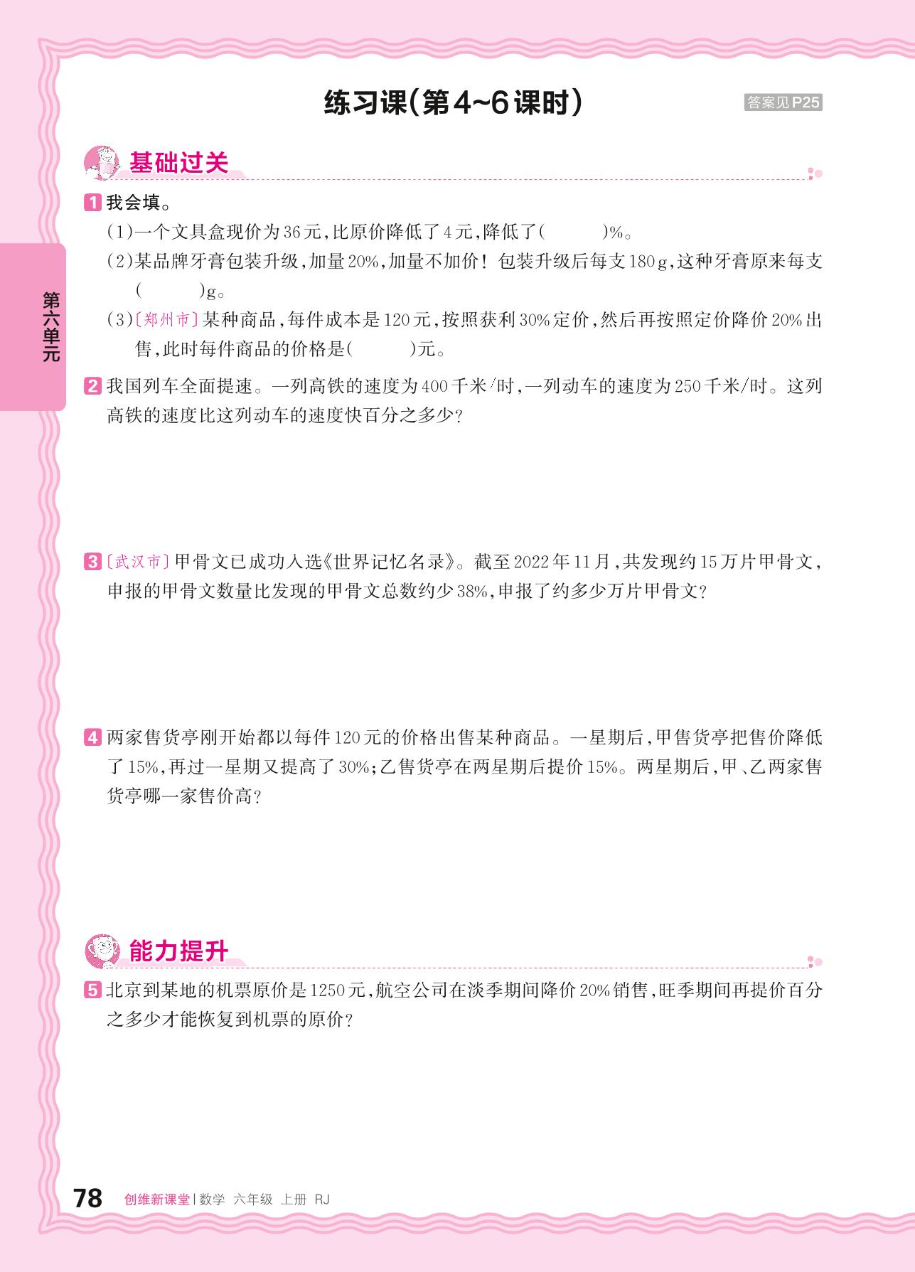 2024秋上册六年级数学人教版 第六单元 百分数(一)——百分数的应用练习课