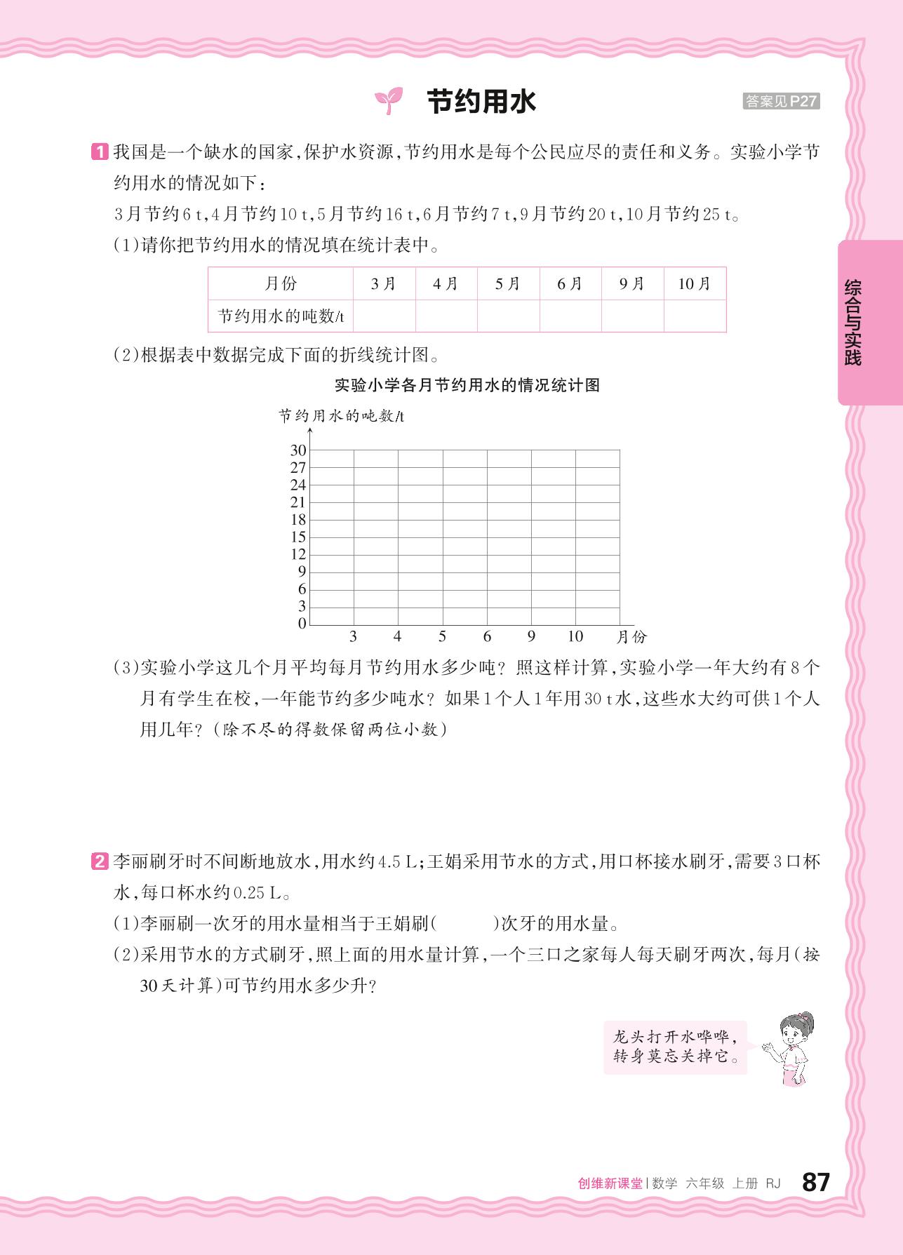 2024秋上册六年级数学人教版 第七单元 扇形统计图——节约用水
