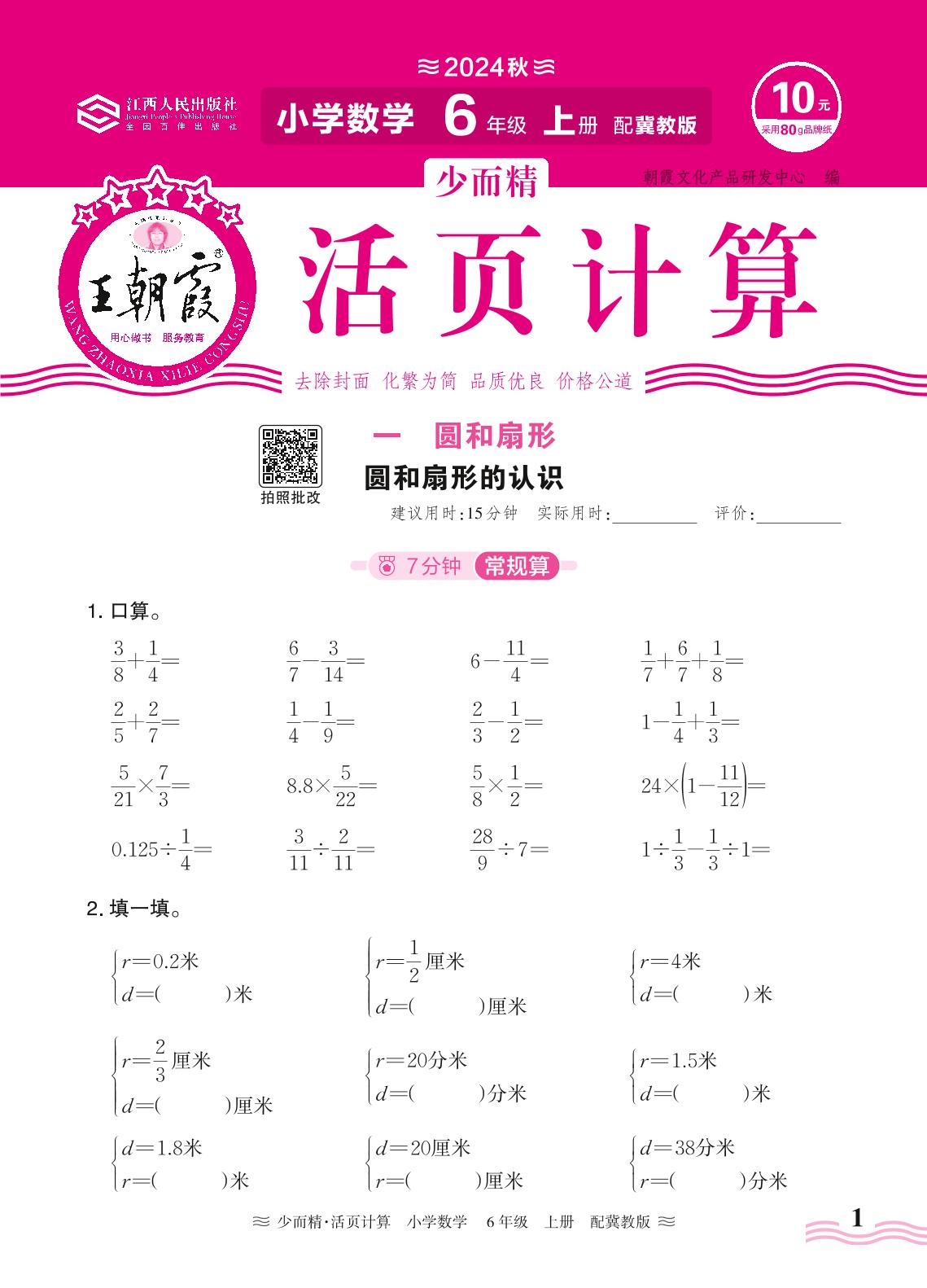 2024秋上册六年级数学冀教版 第一单元 圆和扇形——圆和扇形的认识