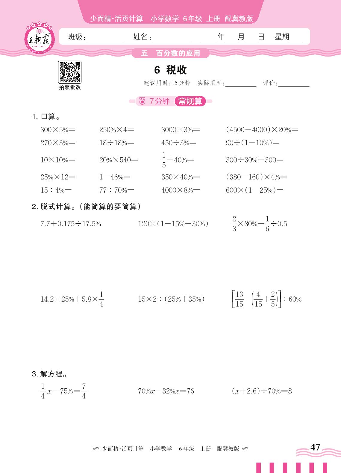 2024秋上册六年级数学冀教版 第五单元 百分数的应用——6. 税收_R240819095027713