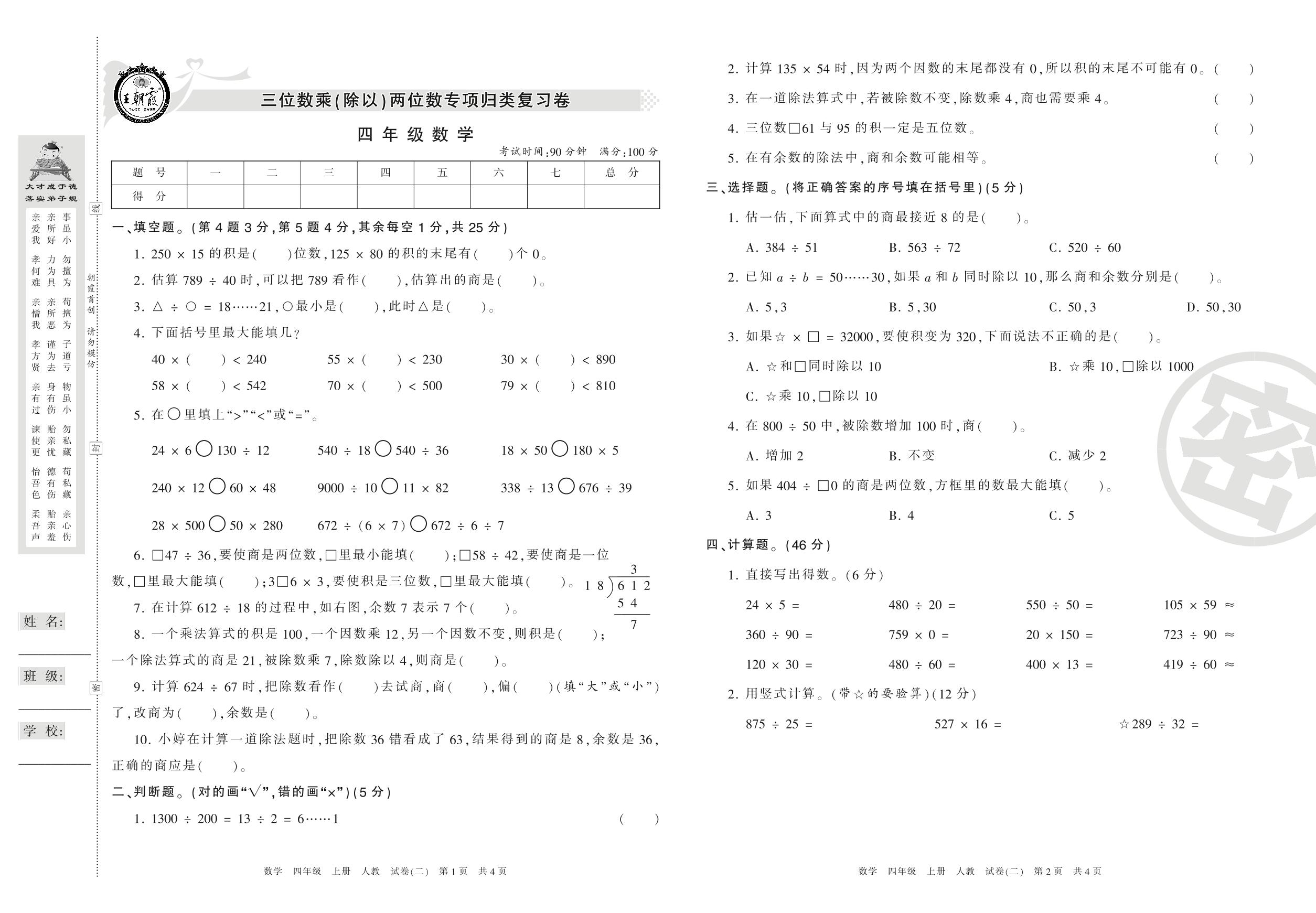 王朝霞期末专项卷四年级上册数学(人教版)_R210804154508【2】