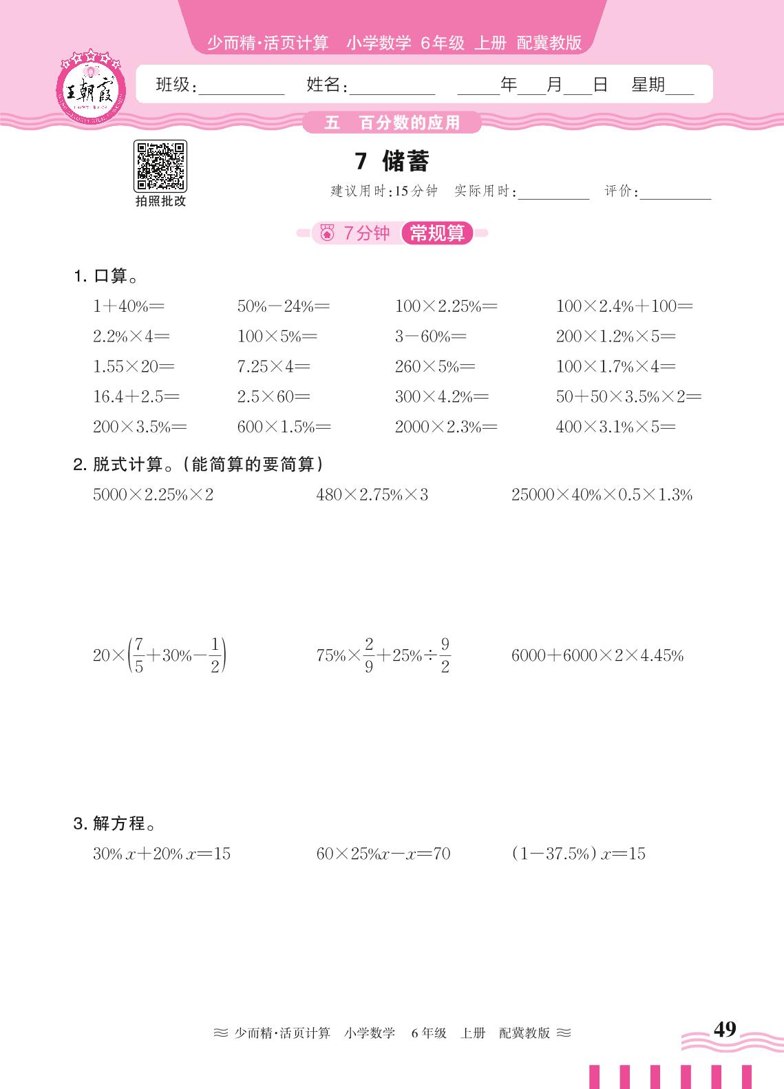 2024秋上册六年级数学冀教版 第五单元 百分数的应用——7. 储蓄_R240819095027132