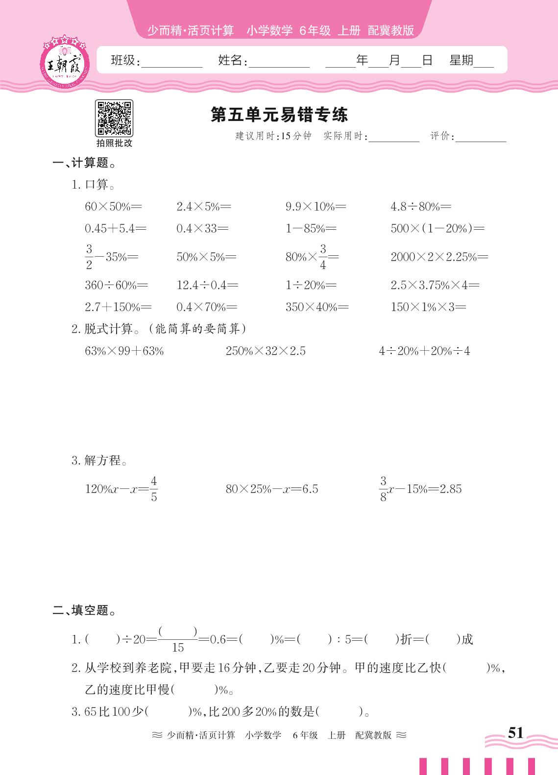 2024秋上册六年级数学冀教版 第五单元易错专练