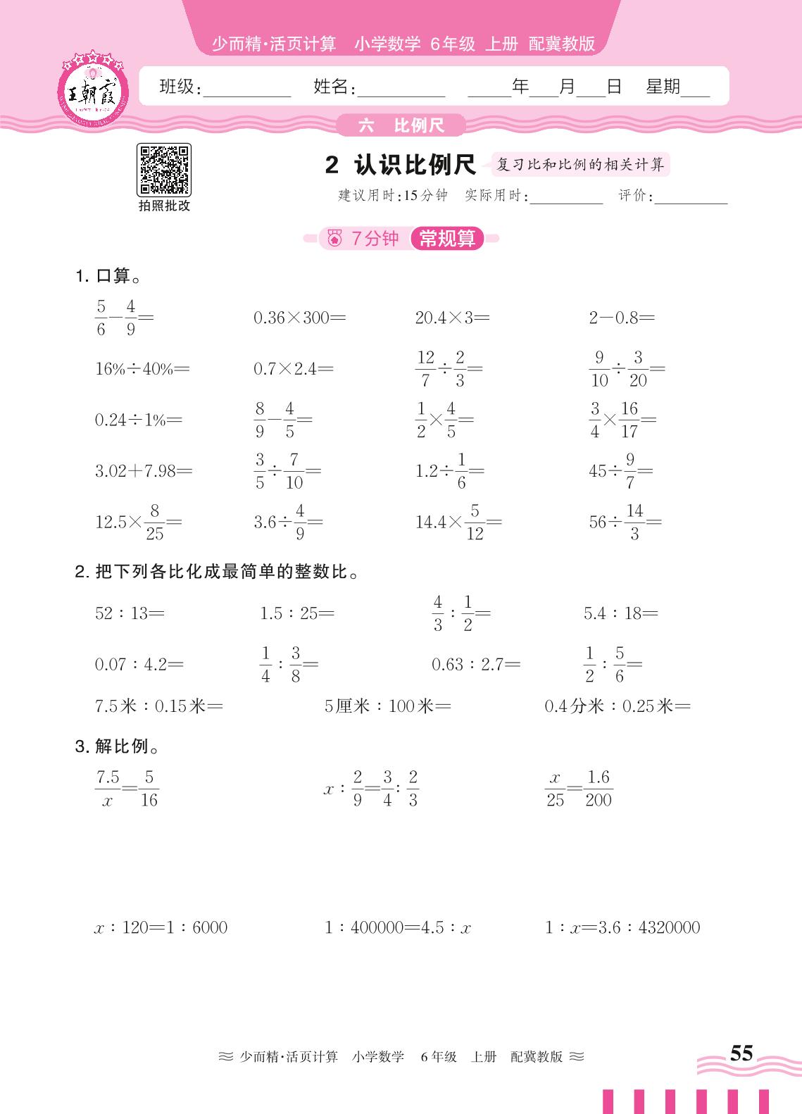 2024秋上册六年级数学冀教版 第六单元 比例尺——2. 认识比例尺_R240819095028640