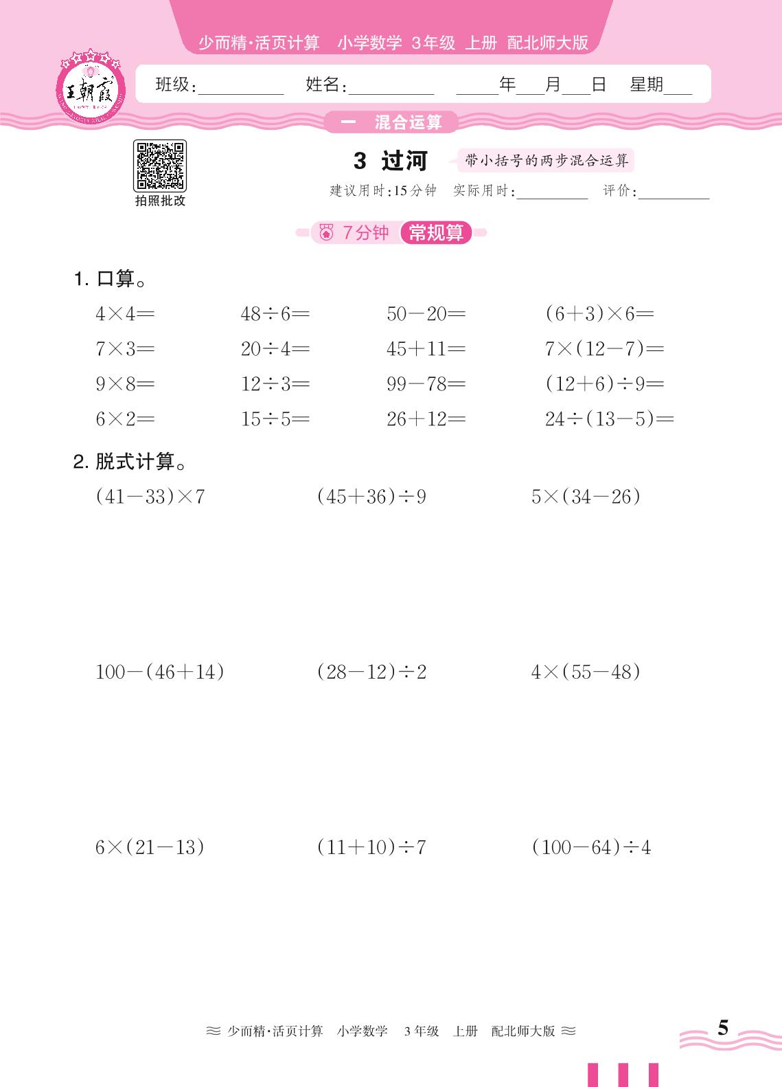 2024秋上册三年级数学北师版 第一单元 混合运算——3. 过河