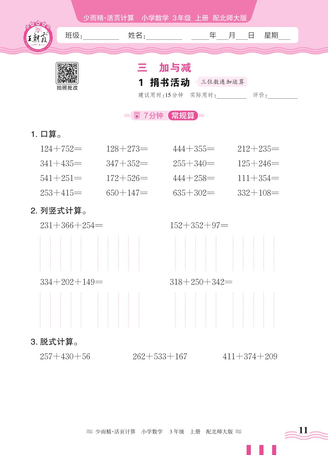 2024秋上册三年级数学北师版 第三单元 加与减——1. 捐书活动_R240819095317209