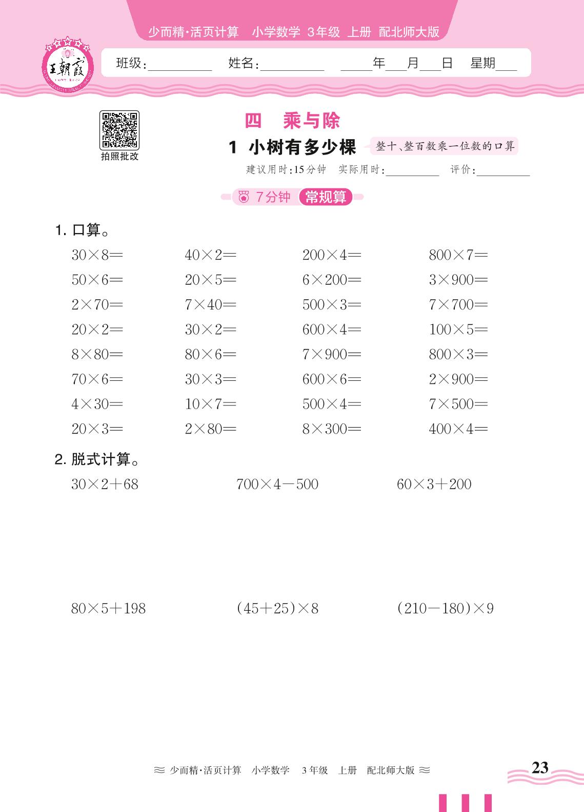 2024秋上册三年级数学北师版 第四单元 乘与除——1. 小树有多少棵_R240819095319037