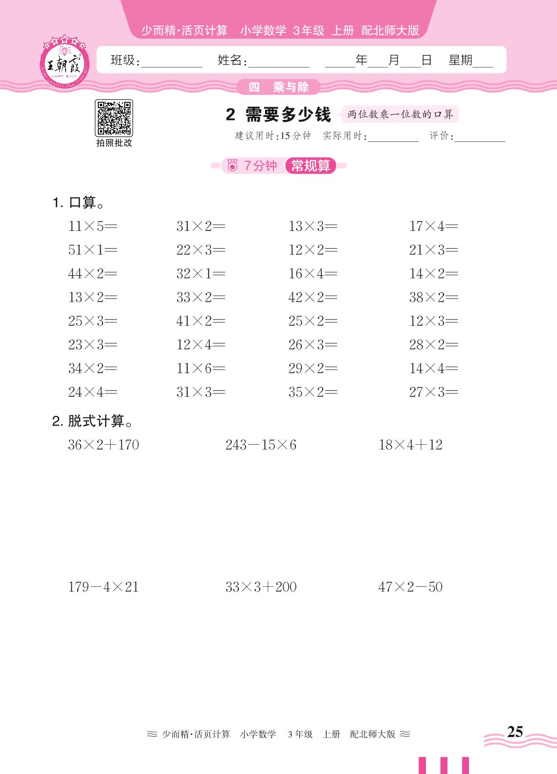 2024秋上册三年级数学北师版 第四单元 乘与除——2. 需要多少钱_R240819095320913