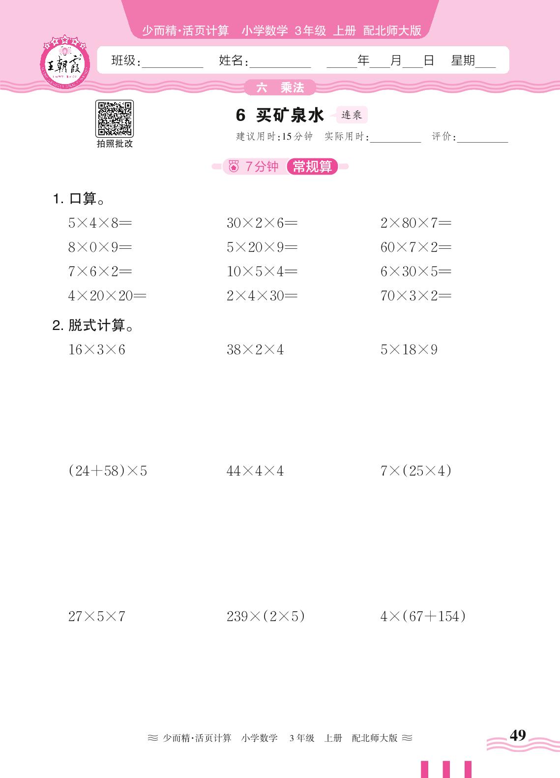 2024秋上册三年级数学北师版 第六单元 乘法——6. 买矿泉水_R240819095324208