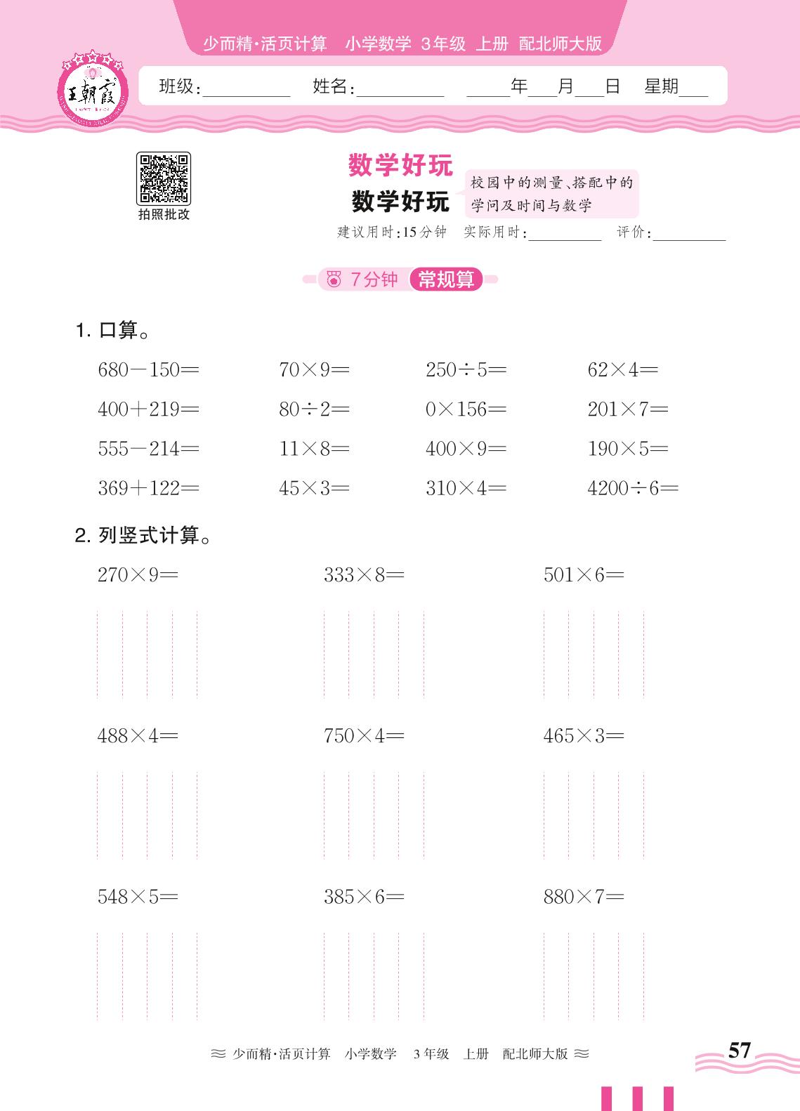 2024秋上册三年级数学北师版 数学好玩——数学好玩