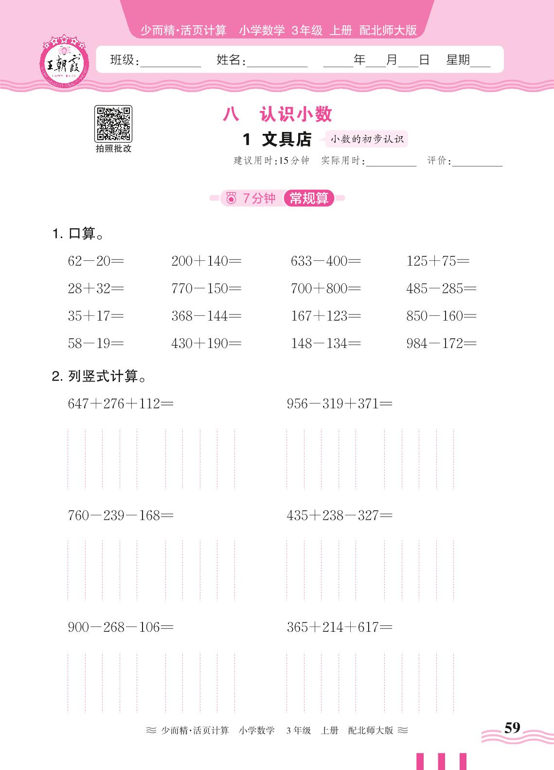 2024秋上册三年级数学北师版 第八单元 认识小数——1. 文具店_R240819095326345