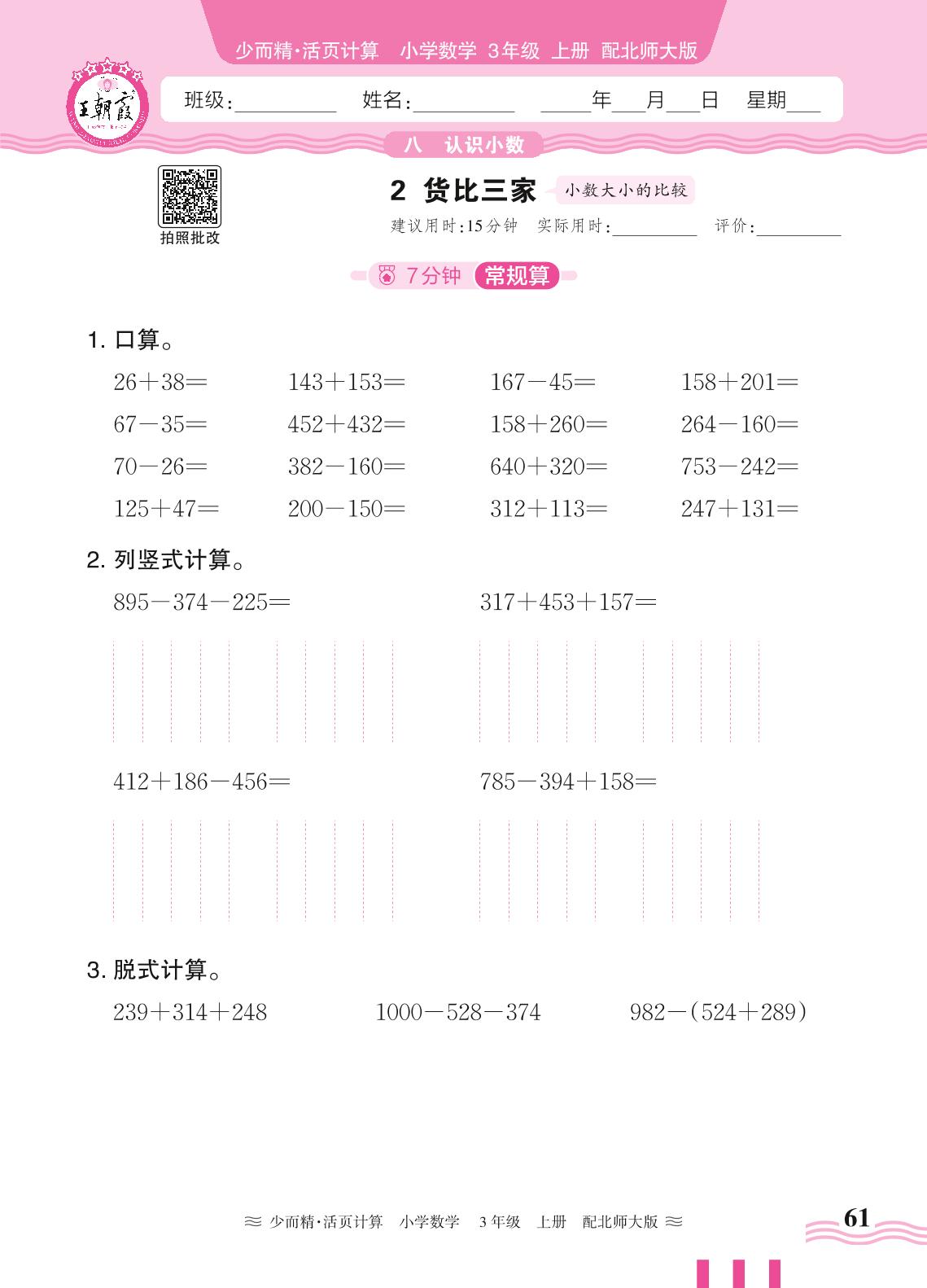2024秋上册三年级数学北师版 第八单元 认识小数——2. 货比三家_R240819095326082