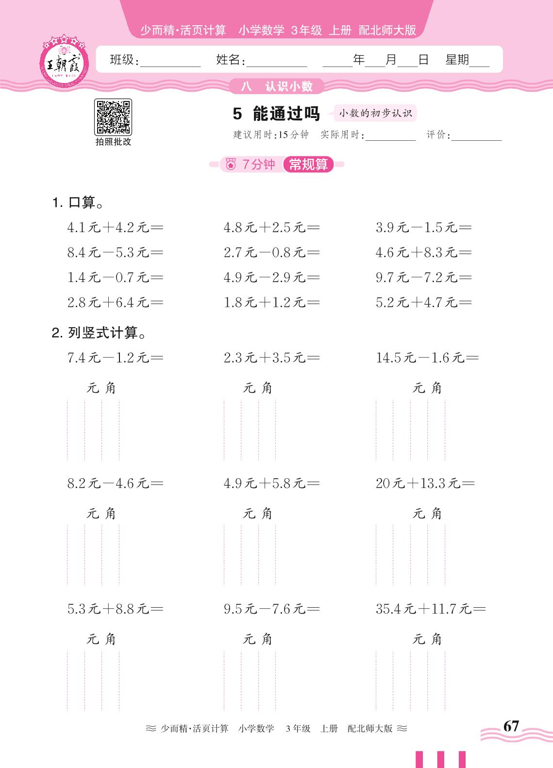2024秋上册三年级数学北师版 第八单元 认识小数——5. 能通过吗_R240819095327118