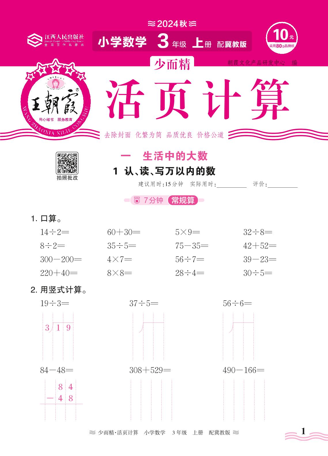 2024秋上册三年级数学冀教版 第一单元 生活中的大数——1. 认、读、写万以内的数_R240819095541291