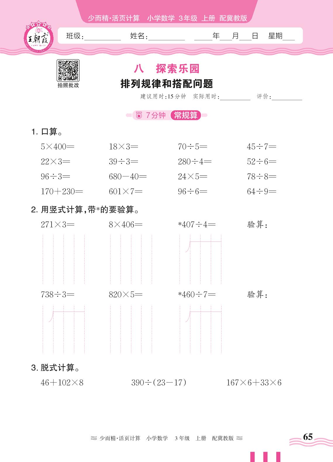 2024秋上册三年级数学冀教版 第八单元 探索乐园——排列规律和搭配问题