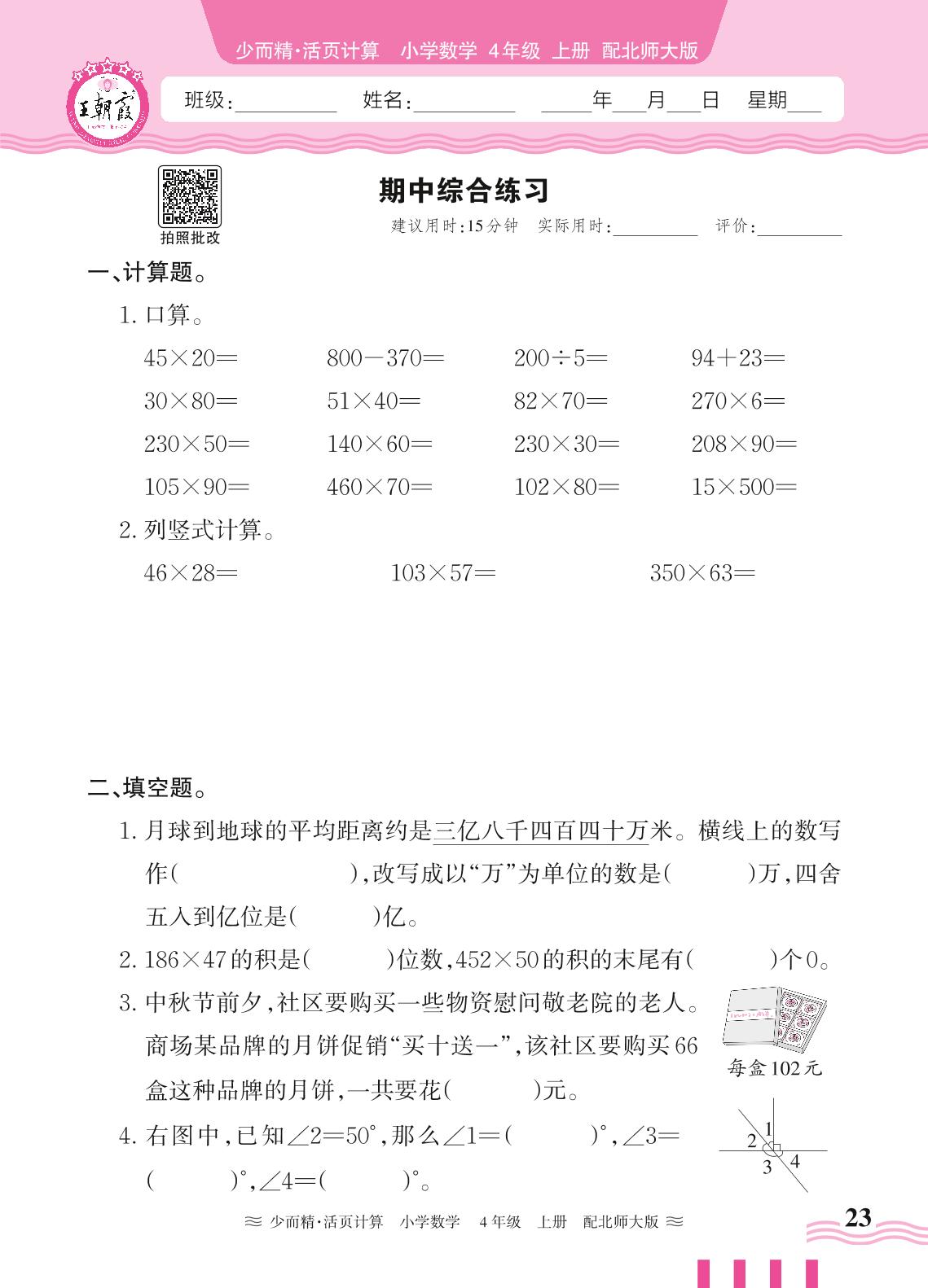 2024秋上册四年级数学北师版 期中综合练习(计算专练)