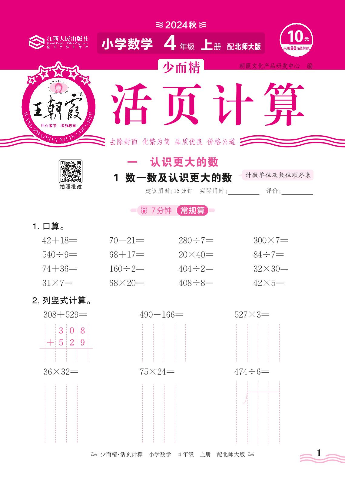 2024秋上册四年级数学北师版 第一单元 认识更大的数——1. 数一数及认识更大的数