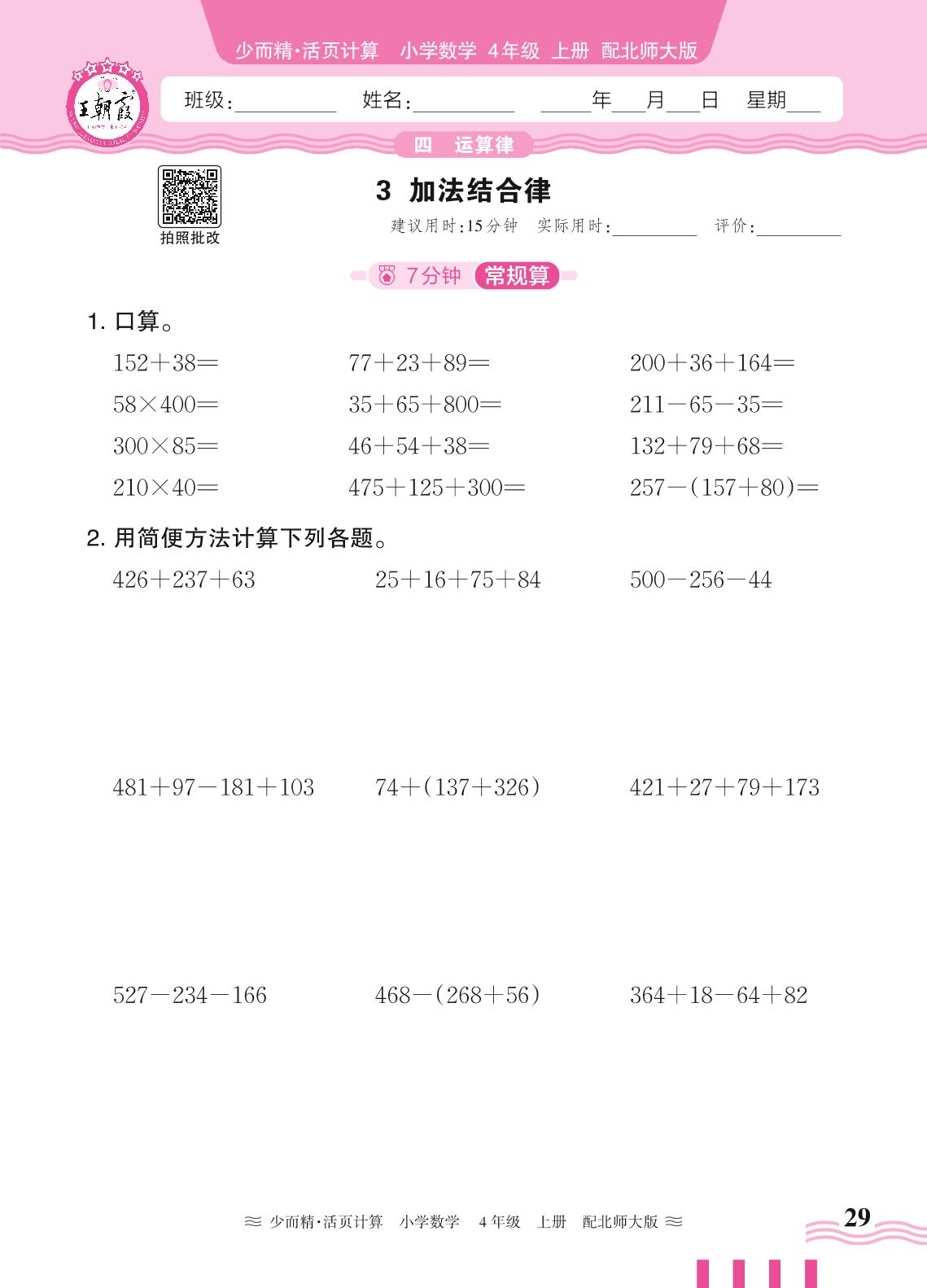 2024秋上册四年级数学北师版 第四单元 运算律——3. 加法结合律