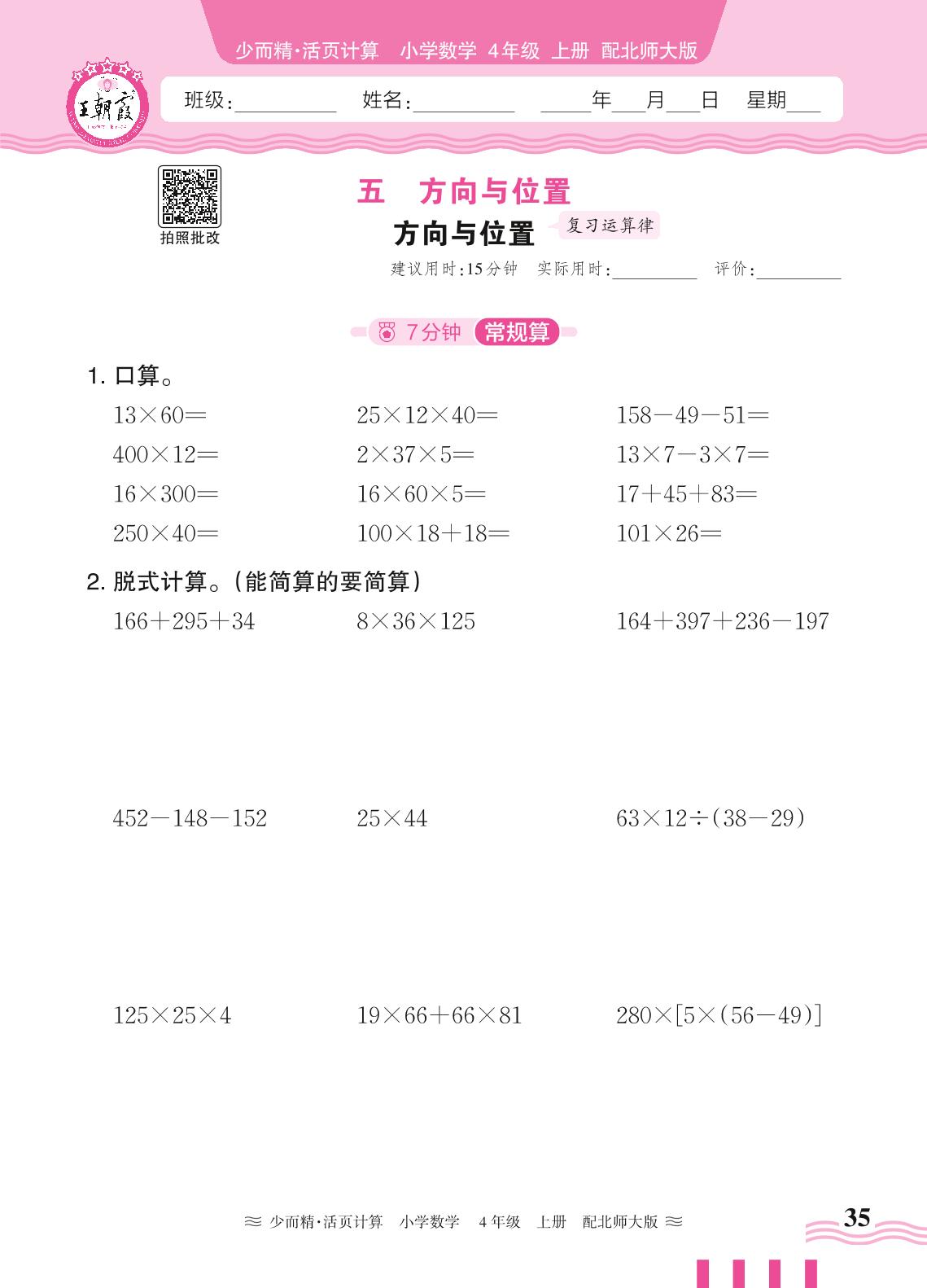 2024秋上册四年级数学北师版 第五单元 方向与位置——方向与位置