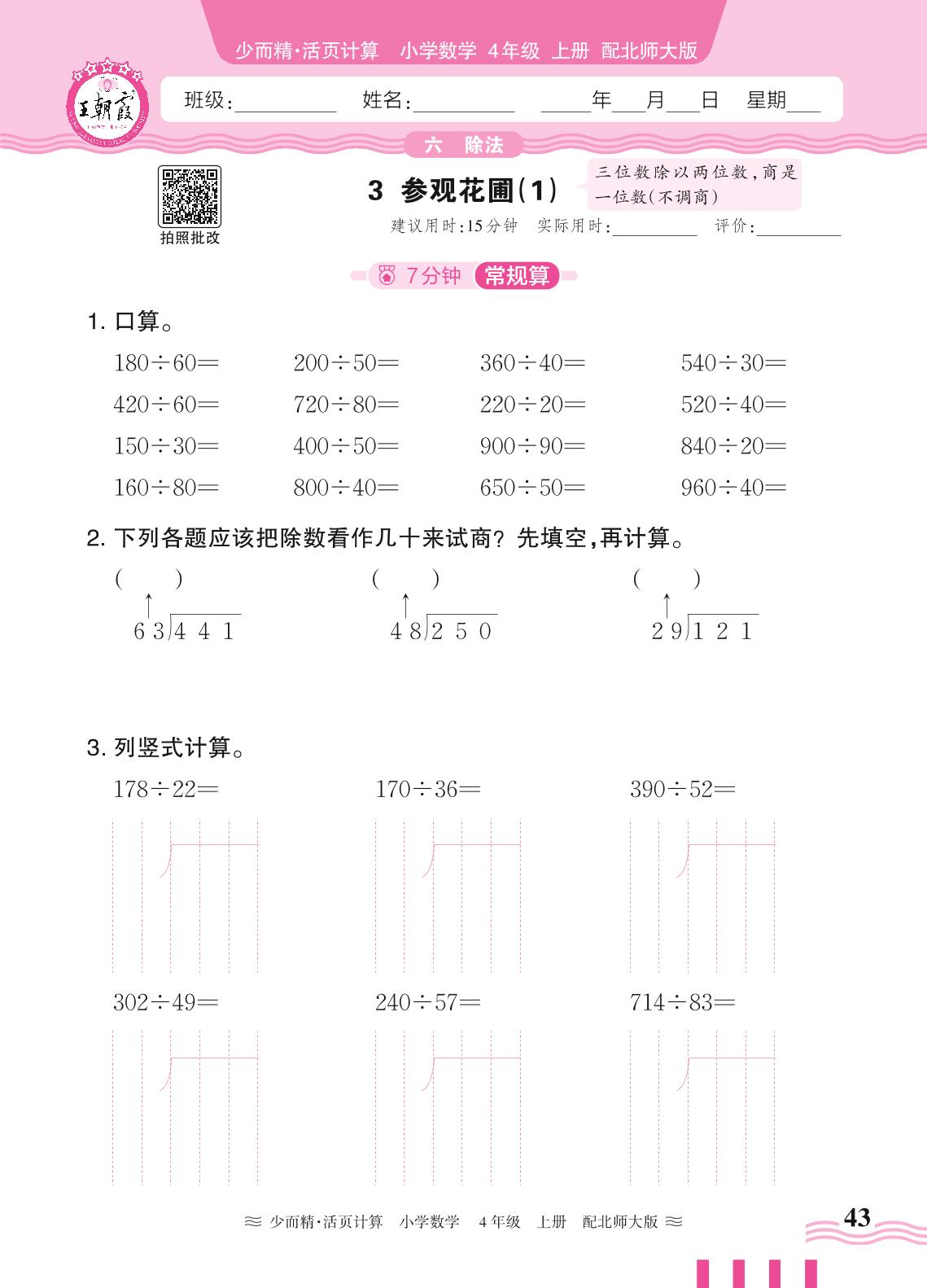 2024秋上册四年级数学北师版 第六单元 除法——3. 参观花圃(1)_R240819095923514