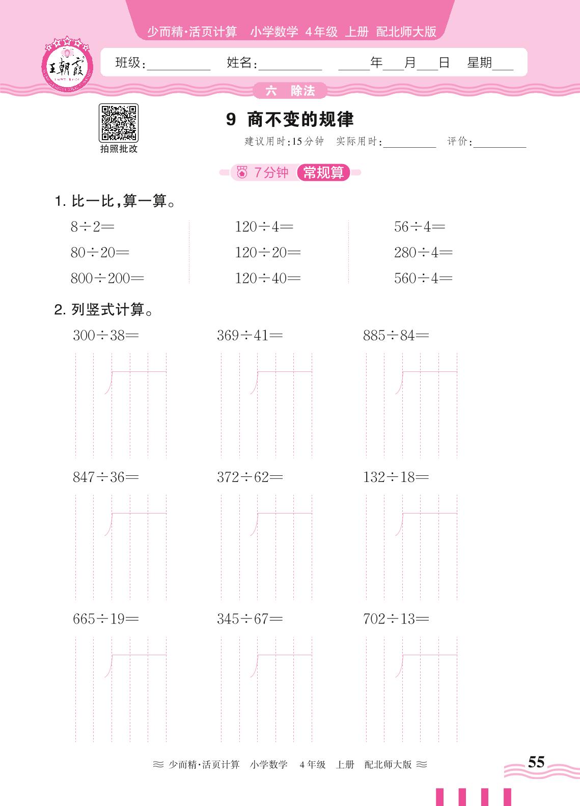 2024秋上册四年级数学北师版 第六单元 除法——9. 商不变的规律