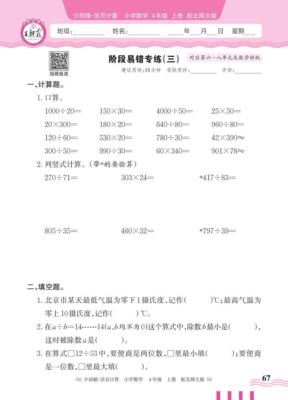 2024秋上册四年级数学北师版 第六~八单元及数学好玩 阶段易错专练