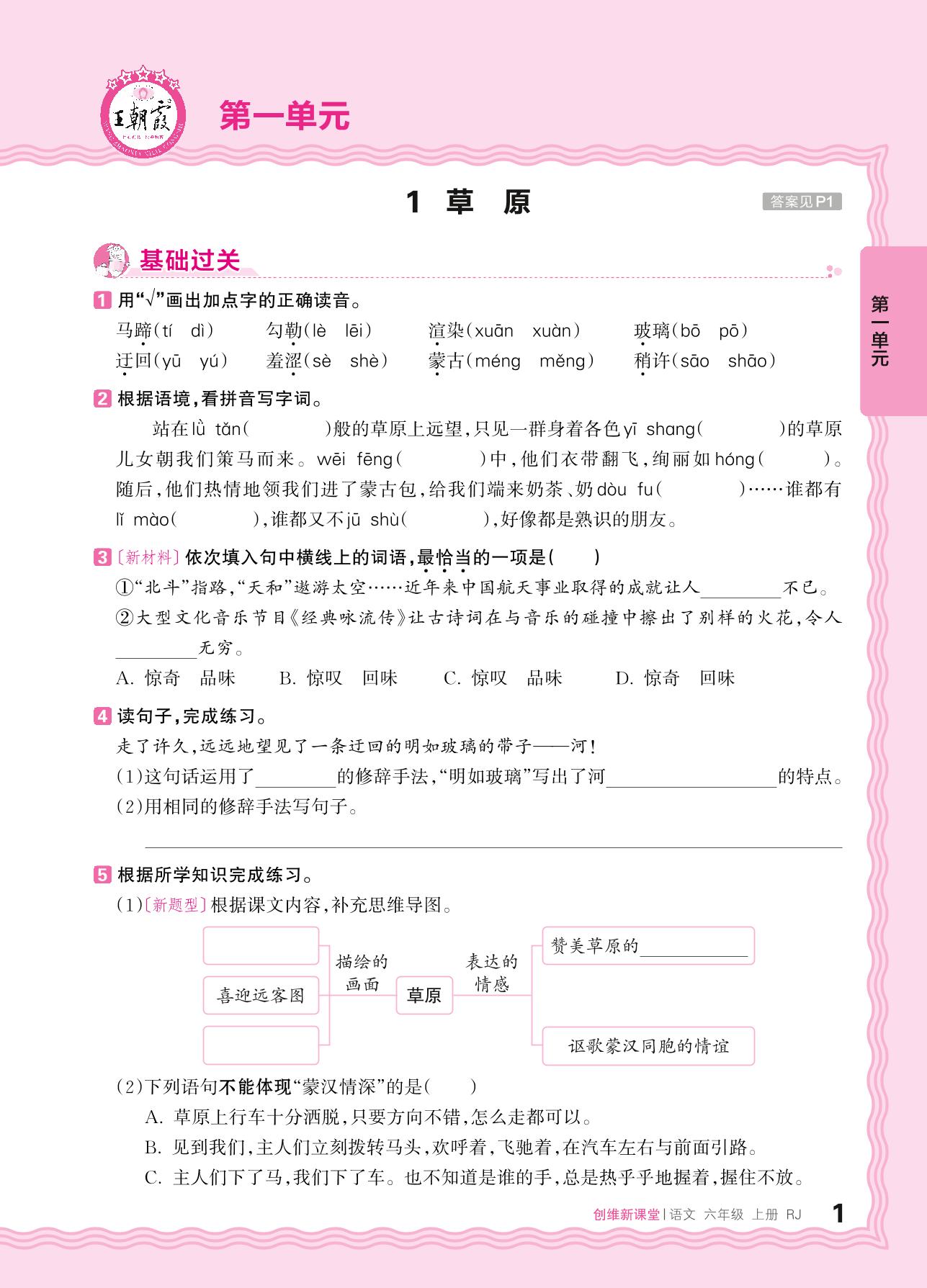 2024秋上册六年级语文人教版 第一单元 触摸自然——1. 草原